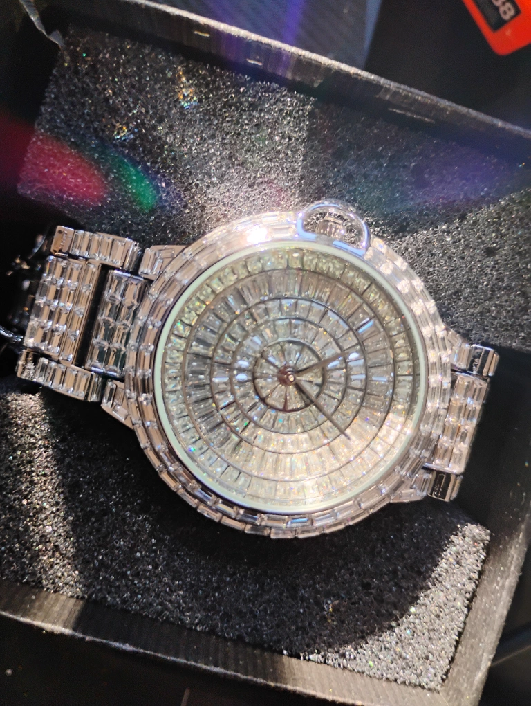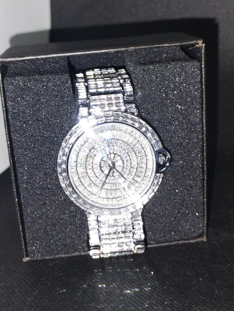 81Beautiful silver watch. Crystal accents. Round face. Metal band. Looks expensive! square baguette's