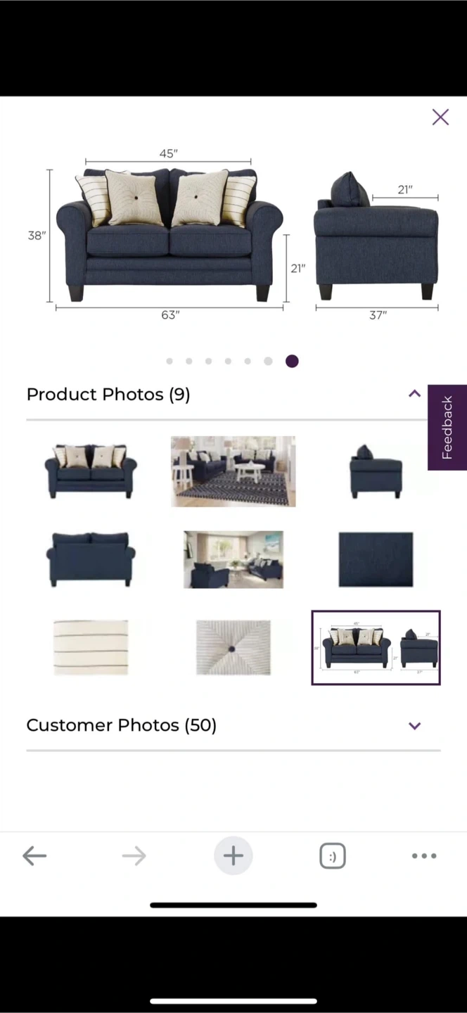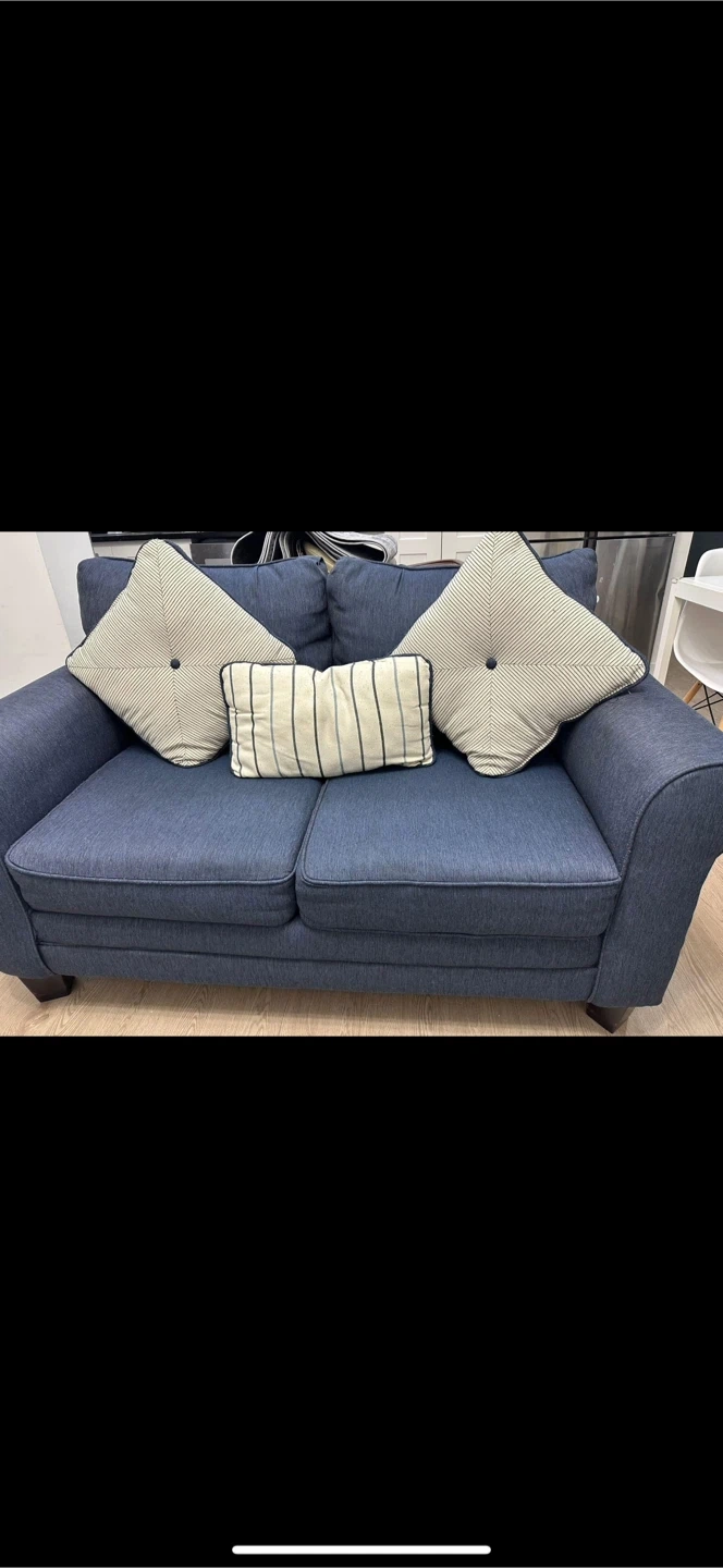 I'm selling a comfy loveseat sofa in a nice blue color! It's in great shape and ready for a new home. The dimensions are 63 inches wide, 38 inches tall, and 37 inches deep. It's a great size for smaller spaces