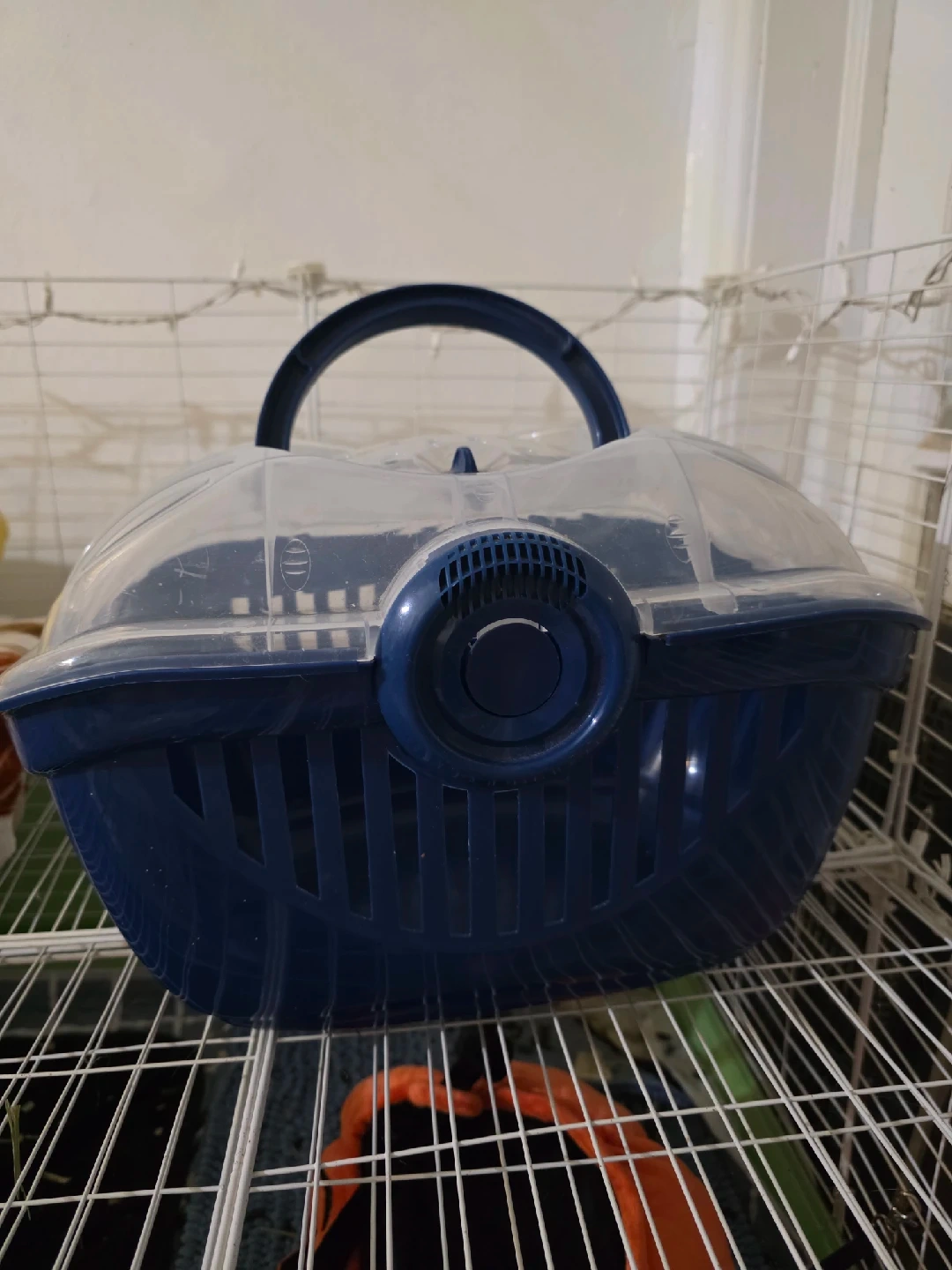 10Here's a sturdy blue pet carrier! It's great for taking your small furry friend to the vet or on other short trips. The carrier has a handle for easy carrying and a clear top so your pet can see out
