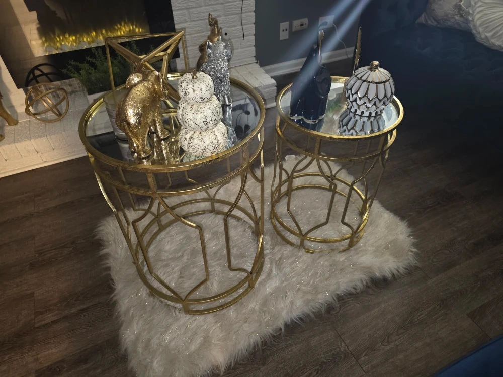 Accent Table - Marble Top, Gold Finish - 3 Piece Set