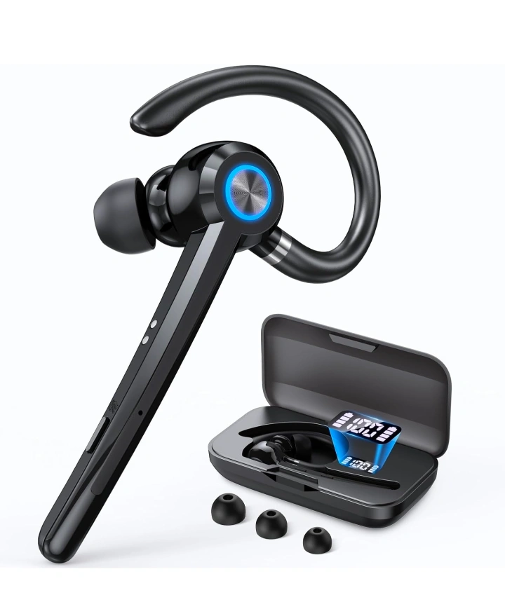 22Bluetooth Headset with Microphone,V5.4 Bluetooth Earpiece with Charing Case 150H Standby Time Hands Free Headset with Noise Canceling for Work Business Office Trucker(Black)