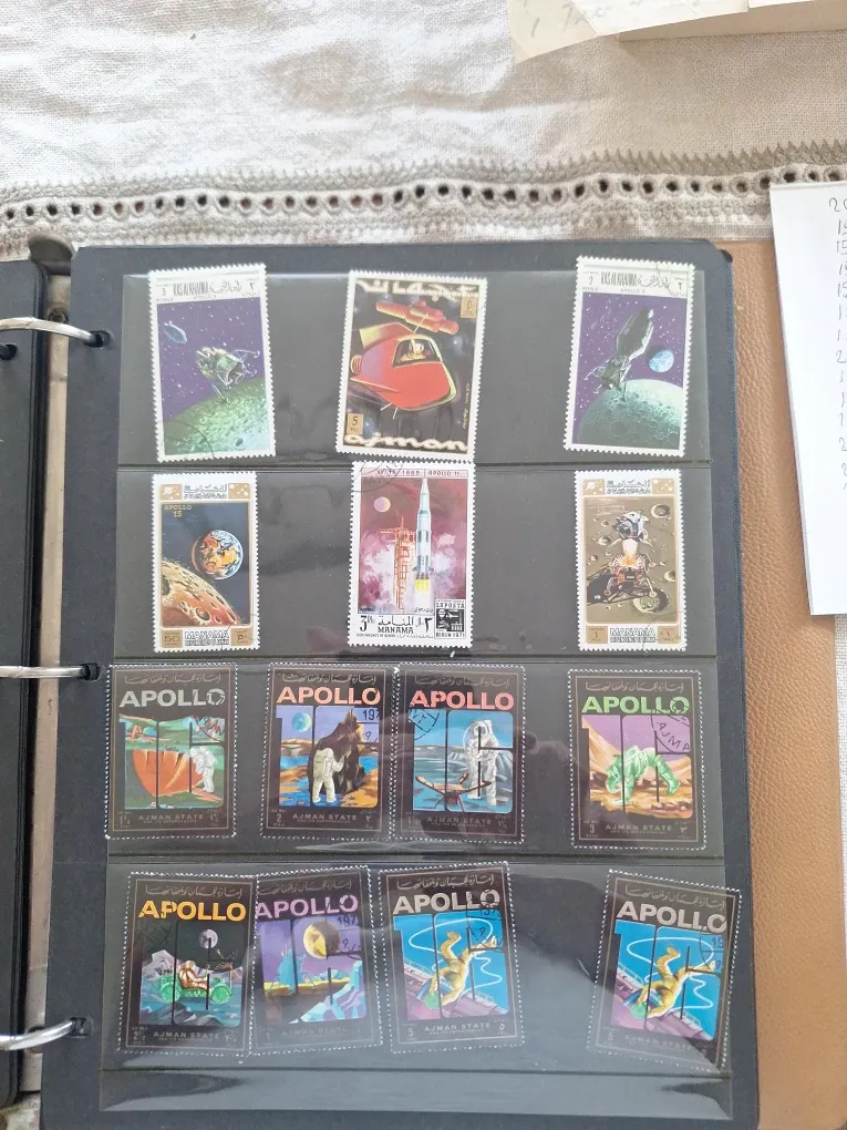 A collection of vintage stamps commemorating the Apollo 11 mission and the space race. Features various scenes from the historic event. Issued by Ajman State, these stamps offer a glimpse into a monumental era of exploration! A must-have for space enthusiasts and philatelists.