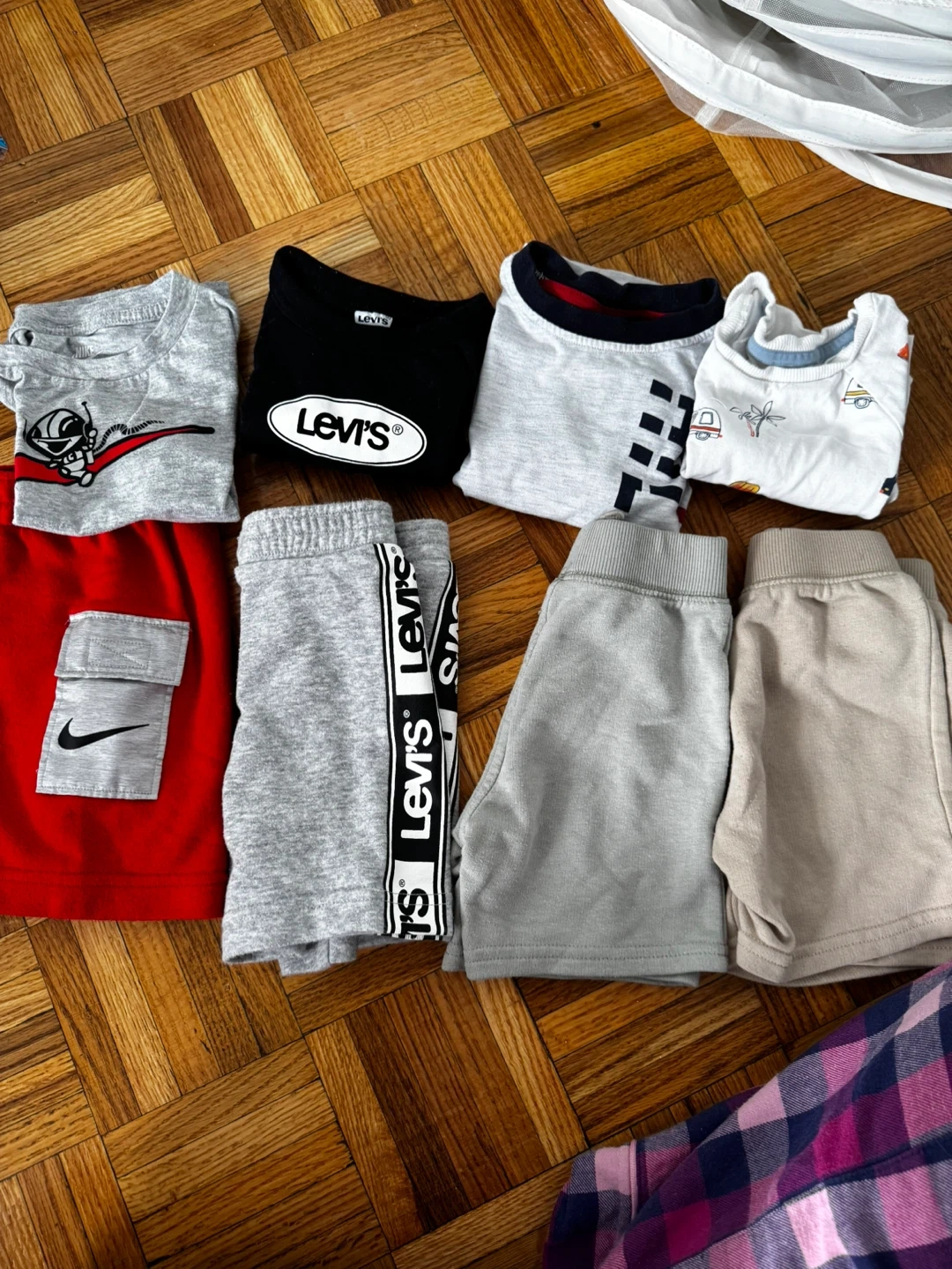 Size 2-3 years. SMOKE FREE AND PET FREE HOME! Some pilling on the shorts, but still has many wears left in these comfy clothes.A bundle of boys' tops and shorts from brands like Levi's and Nike. Includes graphic tees and comfortable shorts. Great for everyday wear!