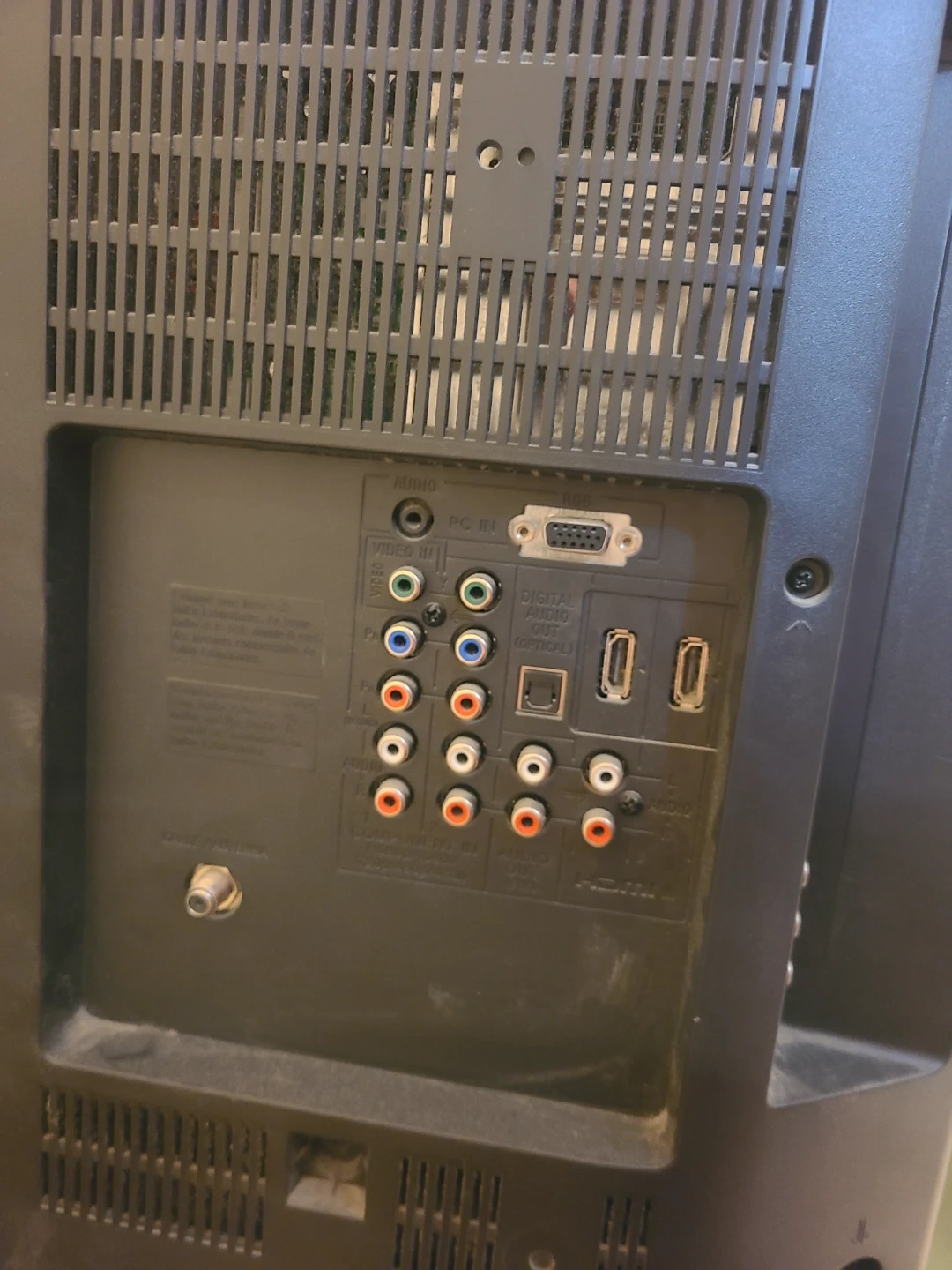 32 inch flat screen TV. Picture is good but original remote is gone. I had used this with an Amazon fire stick (not included). Pictures include all of the connection options. It is not a smart TV, you will need a roku or firestick to watch streaming services or this could be a gaming TV unit.