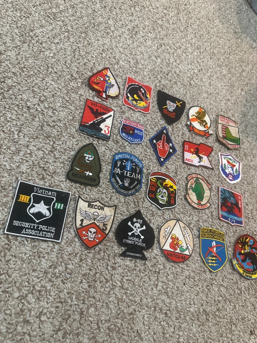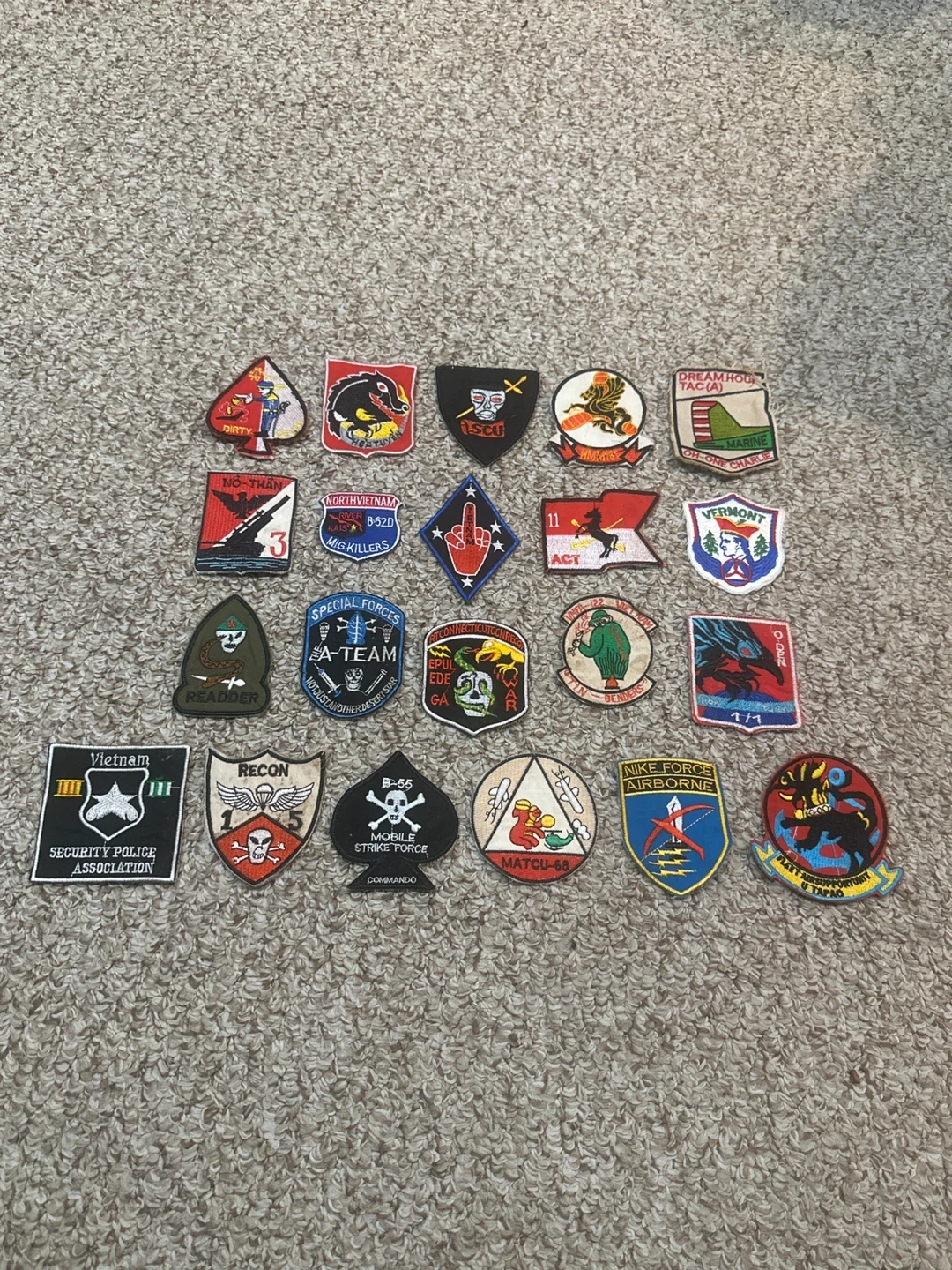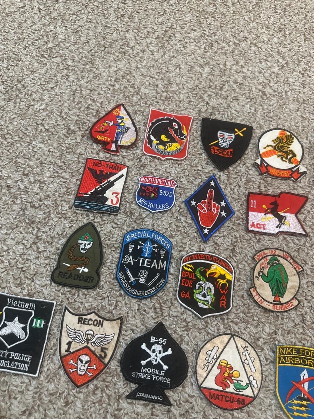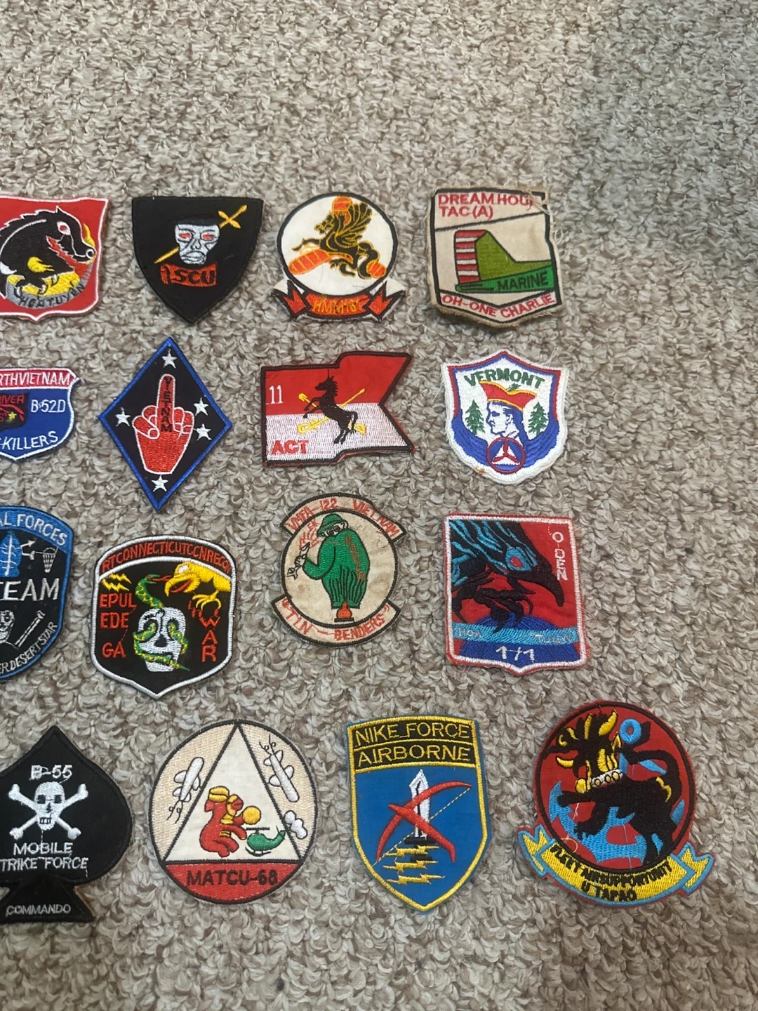 This collection includes a variety of embroidered patches from different military units and special forces. Some patches include specific mission designations or slogans. Listing price is $225, please feel free to send offers, would also consider interesting trades.