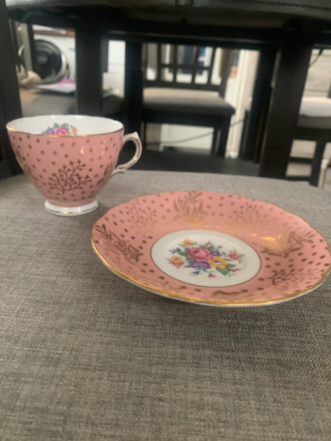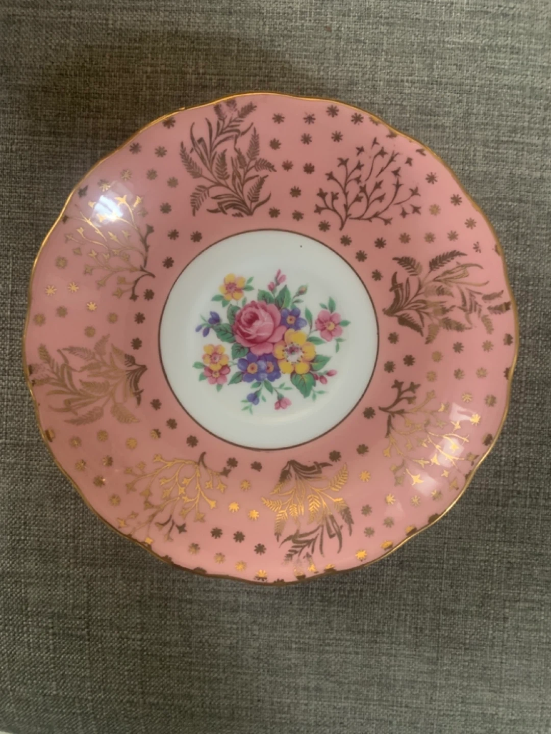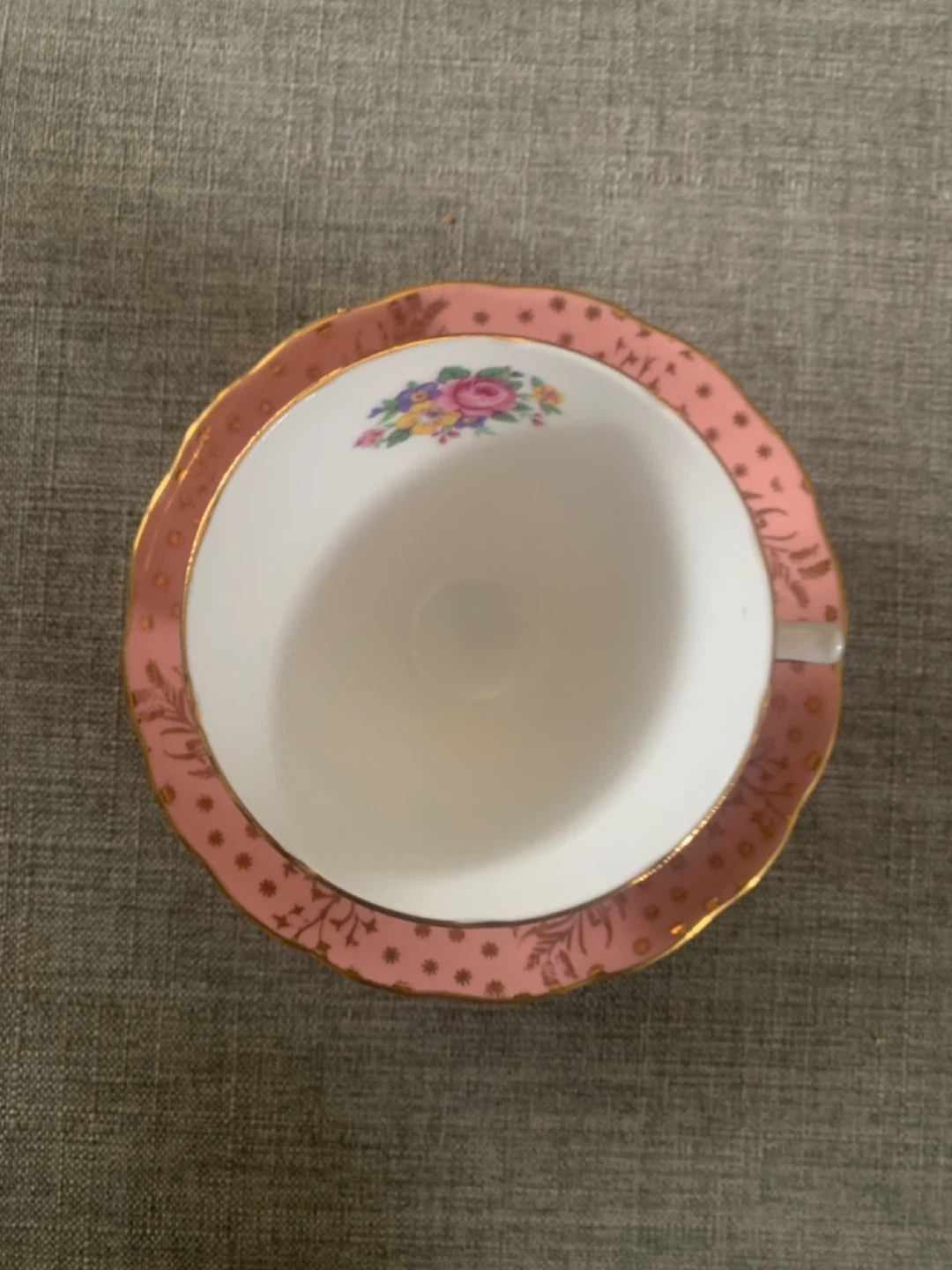 NEVER USED (made in 1920-1930). I have 10 teacup and saucer sets made of fine bone china. I received them when my grandmother passed away. They come from Royal Albert, Queen Anne and Aynsley - best of the best. They need a home with people who drink tea! In perfect condition. Will upload the others in a third post.