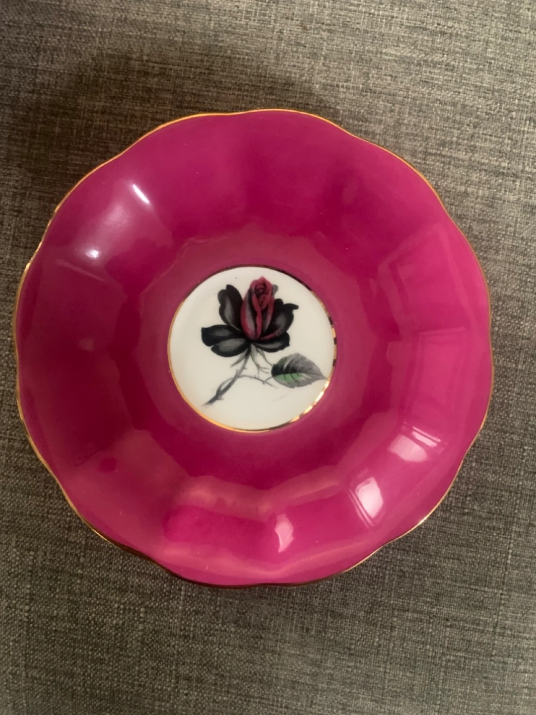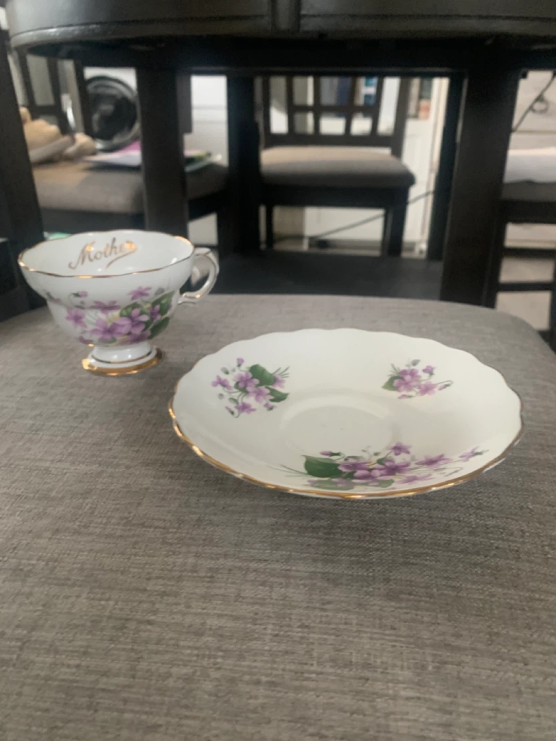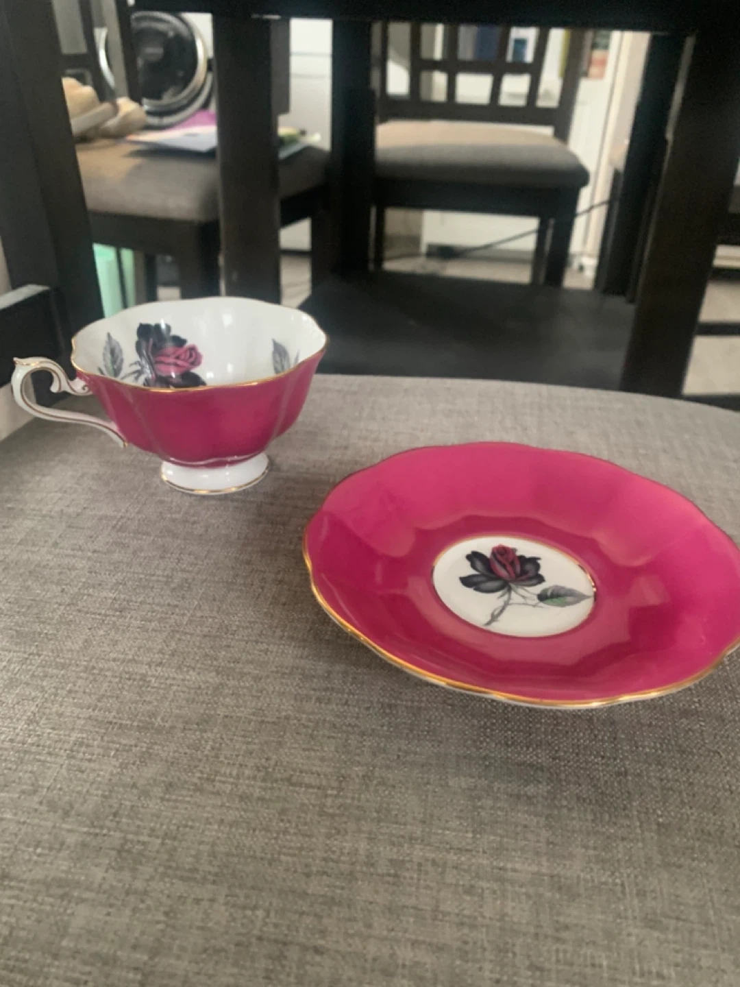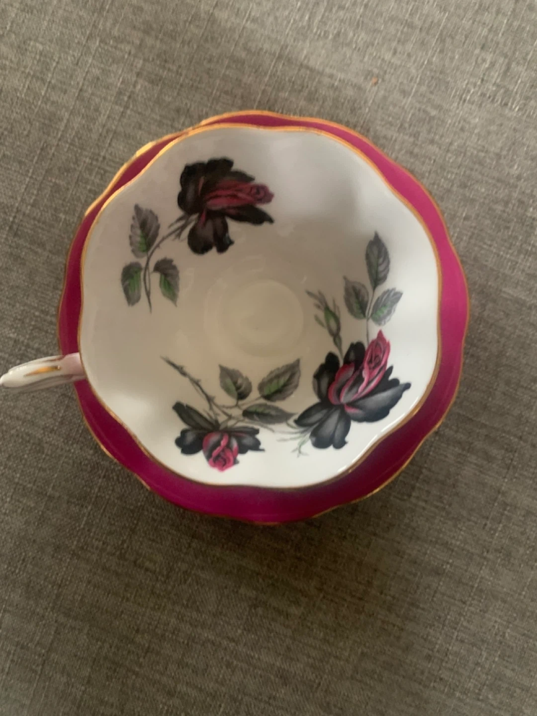 NEVER USED (made in 1920-1930). I have 10 teacup and saucer sets made of fine bone china. I received them when my grandmother passed away. They come from Royal Albert, Queen Anne and Aynsley - best of the best. They need a home with people who drink tea! In perfect condition. Will upload the others in a third post.
