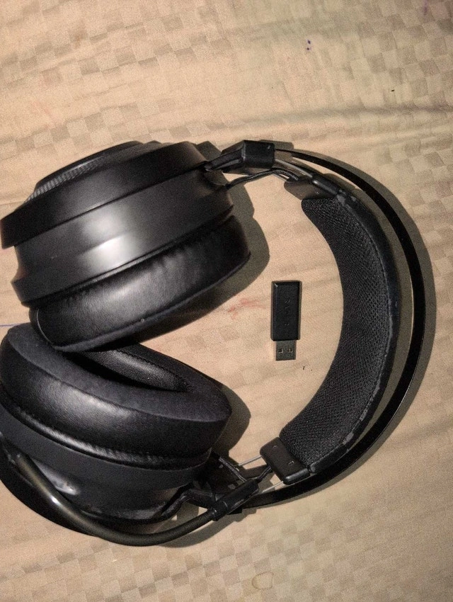 Selling a used Razer Nari Ultimate wireless gaming headset, providing immersive sound and comfort for long gaming sessions. These headphones are in good condition and ready for a new owner. Includes the pen drive. Key features: THX Spatial Audio for realistic positional audio, cooling gel-infused ear cushions for comfort, and wireless connectivity for freedom of movement. If the ad is up, the headset is still available.