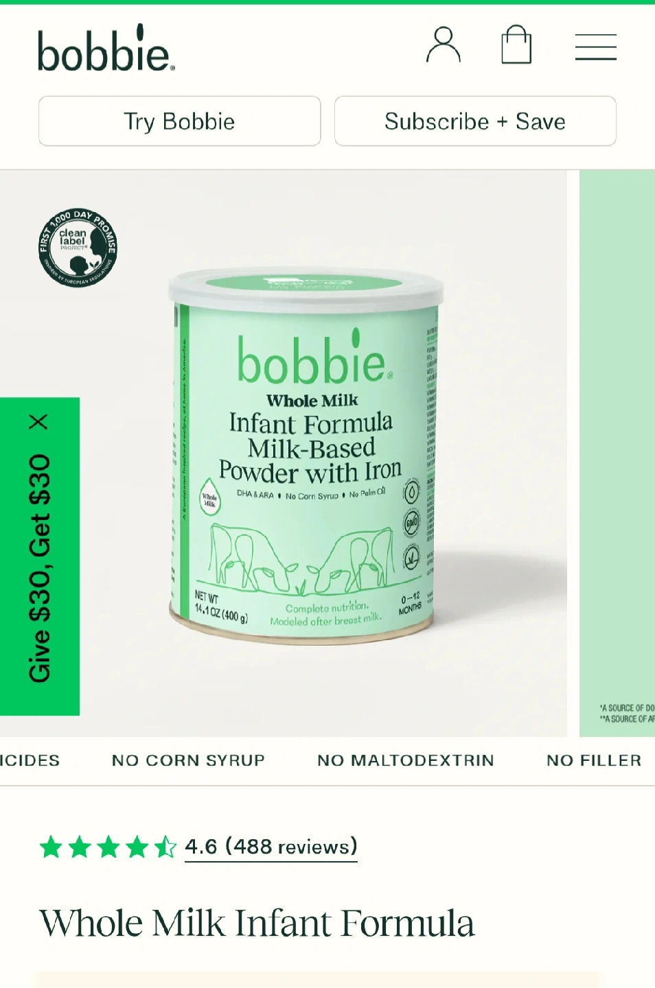 Selling a can of Bobbie Whole Milk Infant Formula Milk-Based Powder with Iron! It is suitable for babies 0-12 months. Expiration Date is 2026 October 08
