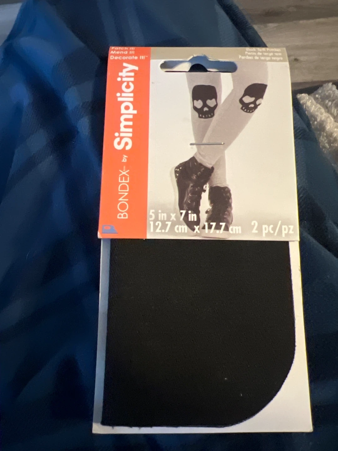 20Selling a pack of Bondex by Simplicity iron-on patches! These are black and measure 5 in x 7 in (12.7 cm x 17.7 cm). There are 2 patches in the pack. Great for mending or decorating!