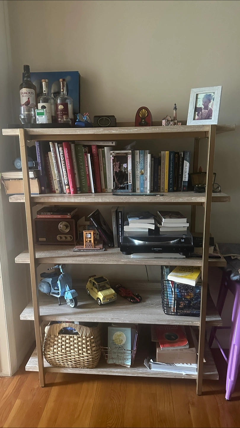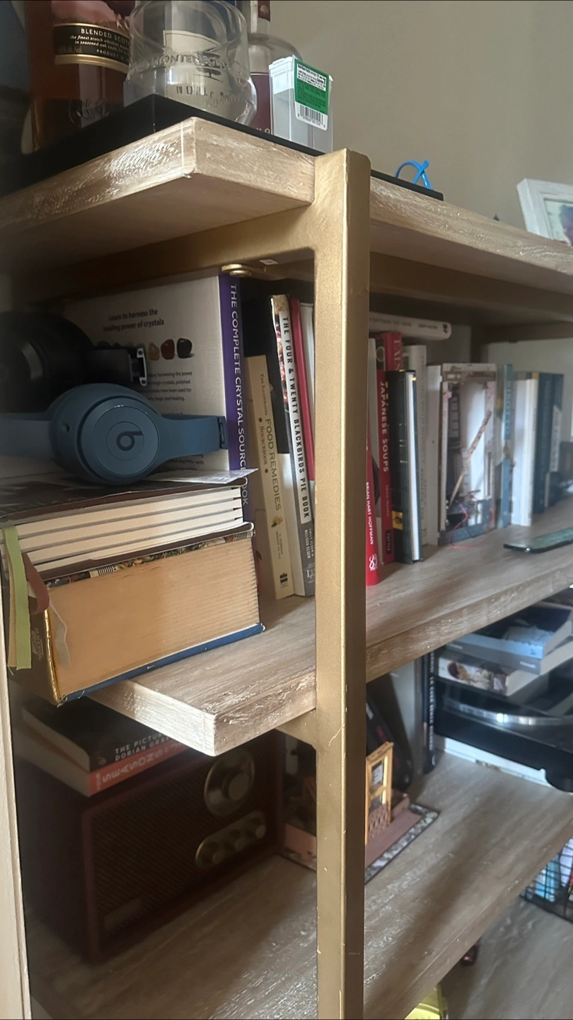 Bookshelf in good condition, besides some light scratchs that on one side. bought it 2 years ago from Joss and Mane. Sizes 16 in width, 54 in height, 42in length, 14in shelf’s width, 11in from each shelf. The bookshelf if very sturdy, each shelf is sustained by the brass structure and can hold lots of books or accent accessories. Pick up already assembled in south Williamsburg. Retail price was $419 asking $80