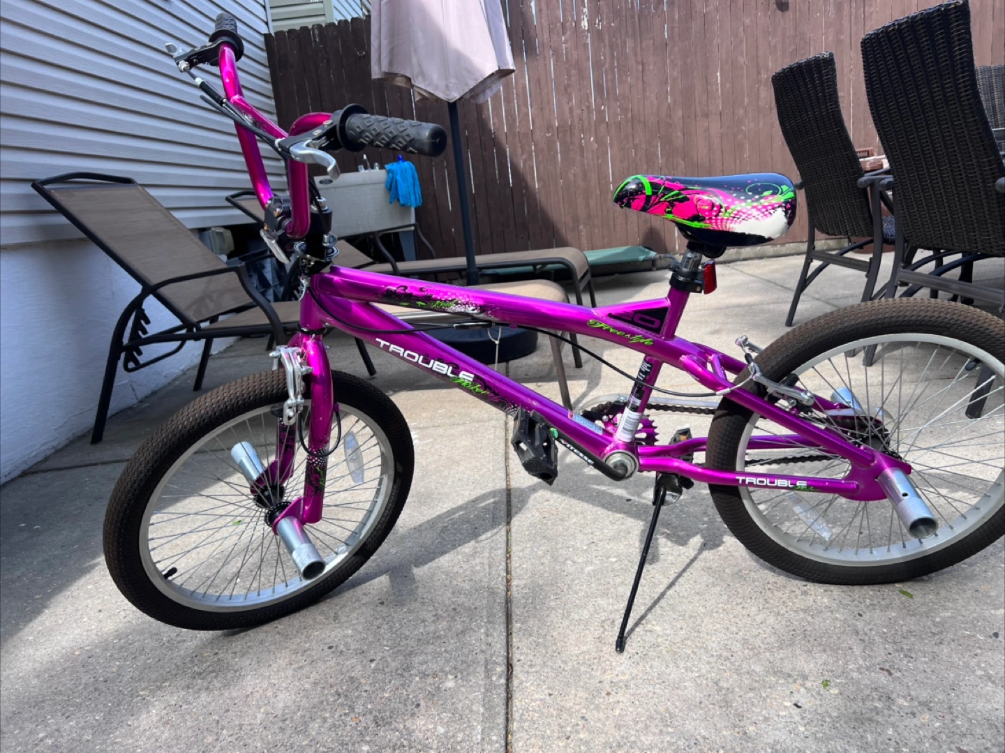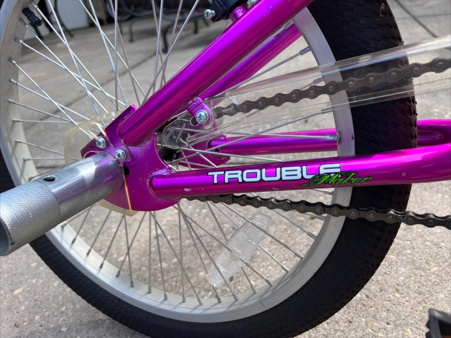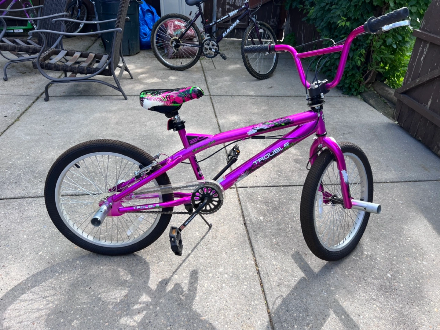 Purple girls' BMX bike. 20-inch wheels. Features a freestyle design. Like new condition. Used for one summer only . No delivery/cash only . Thanks