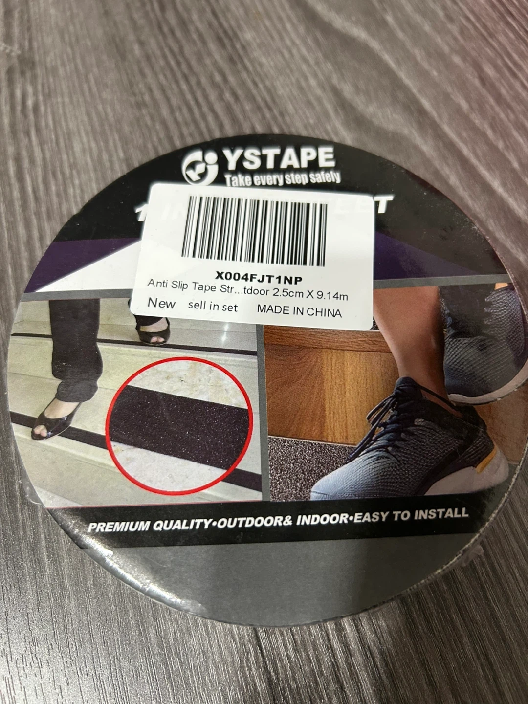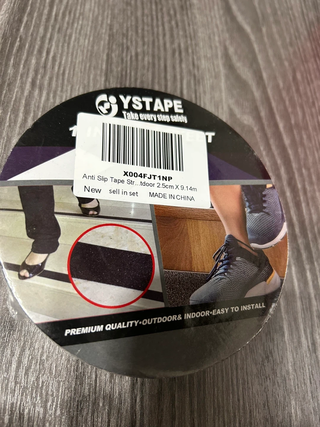 This is a New YSTAPE anti-slip tape for indoor and outdoor use. It's 2.5cm wide and 9.14m long. Easy to install and made for premium quality grip.