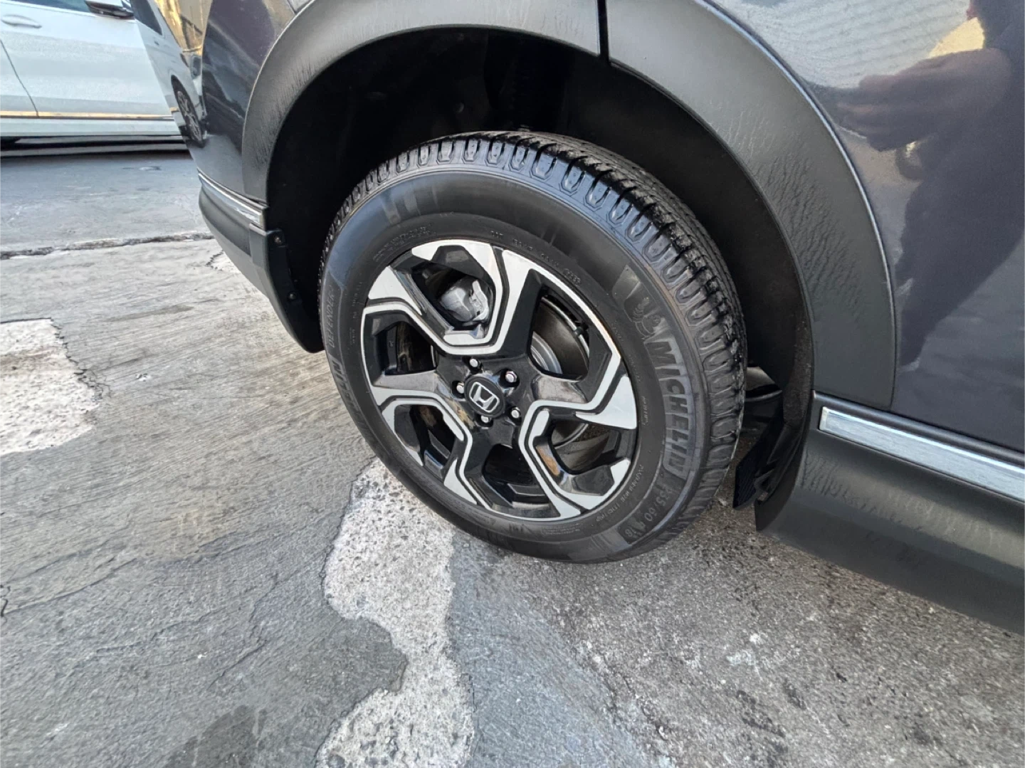 Dark gray Honda CR-V for sale. This is an AWD SUV model. It has alloy wheels and a sleek design.