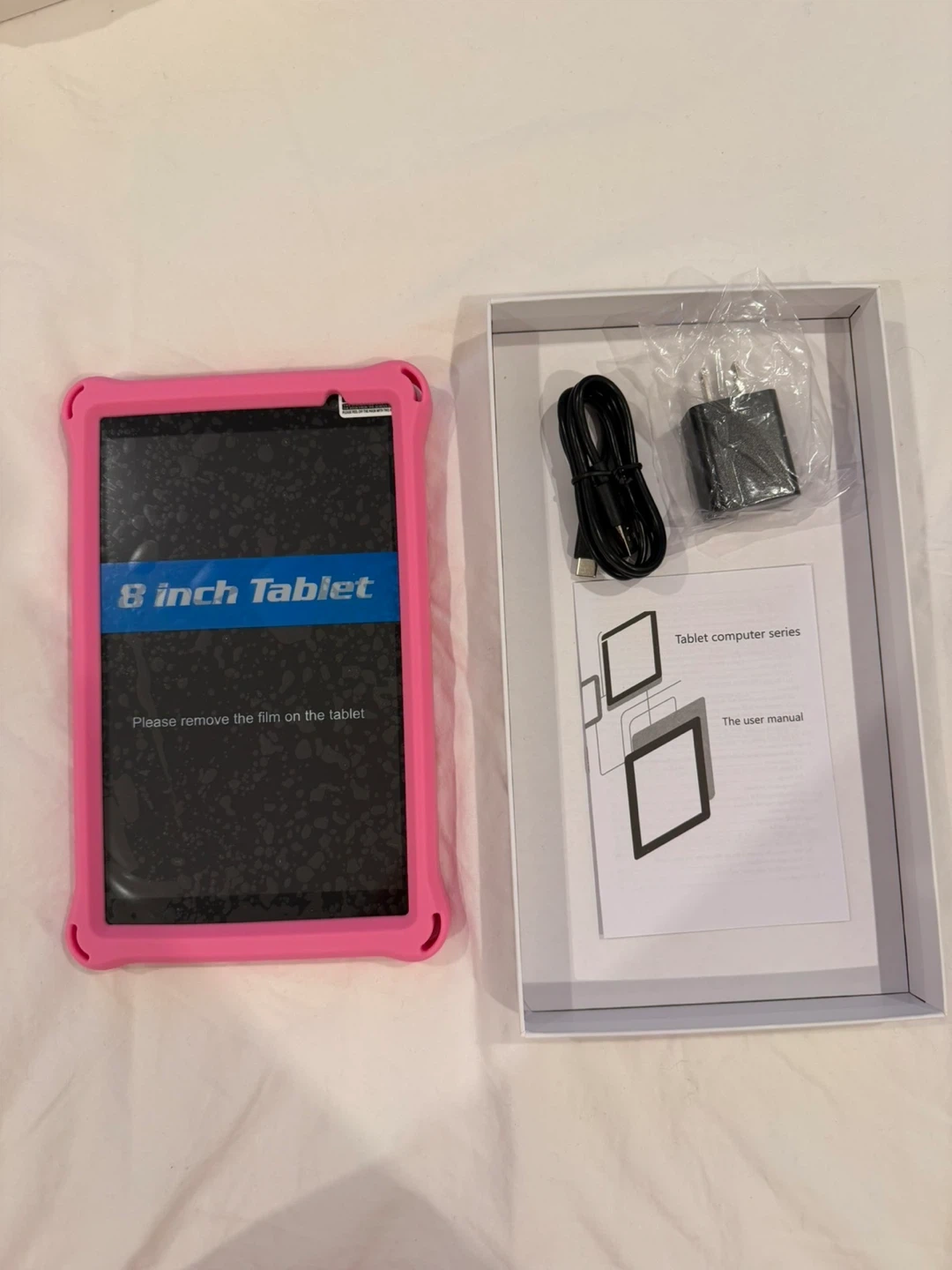 Selling a brand new 8 inch kids tablet in pink! It comes with the original box and includes a charger and user manual