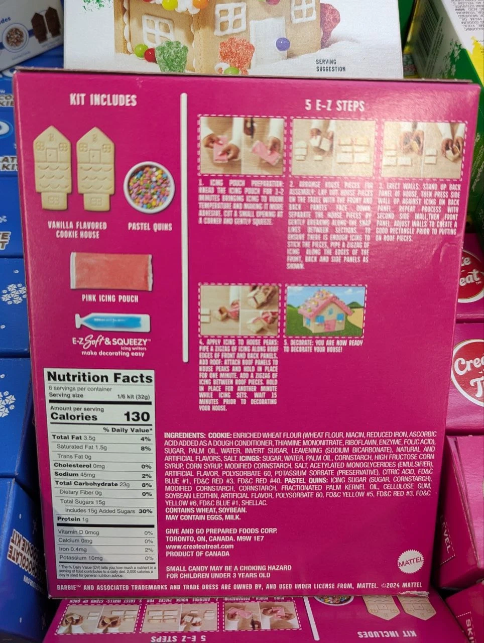 55Selling a Create A Treat Barbie House Cookie Kit! This kit includes vanilla flavored pre-made cookies, assorted candies, and easy-to-use icing. The expiration date is April 01, 2026