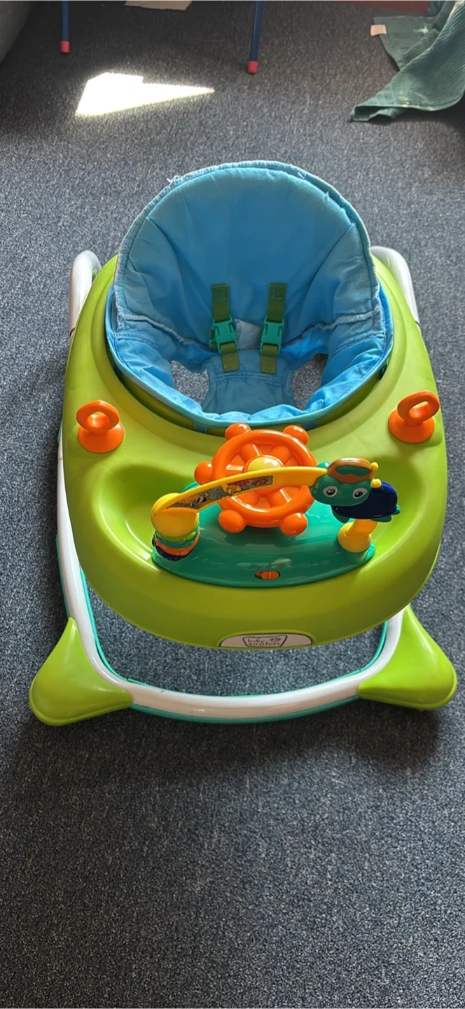 This Bright Starts Around We Go Walker is in great condition! It features a fun activity center to keep your little one entertained as they learn to walk. Perfect for babies ready to explore!