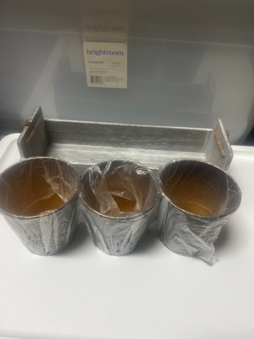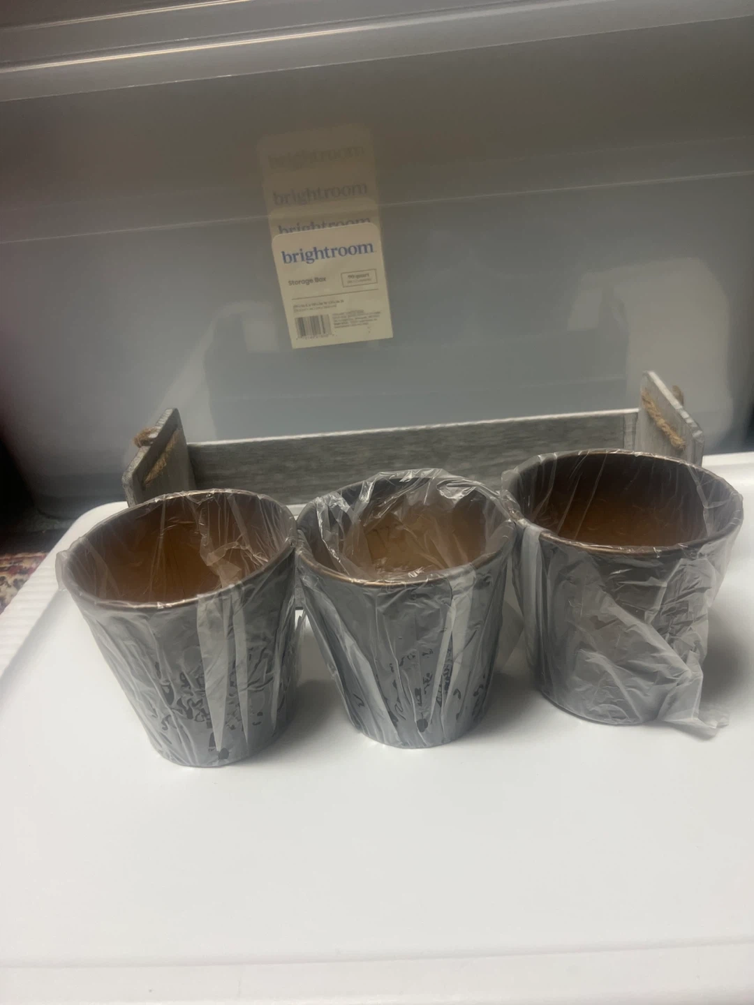 Selling a Brightroom 3-piece planter set with a tray! The planters are a great way to add some greenery to your space. They come with a stylish tray to keep everything organized and tidy. Perfect for indoor or outdoor use!
