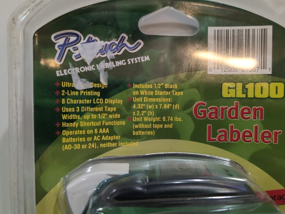 15I'm selling a Brother P-touch GL100 Garden Labeler! It includes 1/2" Black on White Starter Tape. The unit dimensions are 4.32" (w) x 7.64" (d) x 2.2" (h) and the unit weight is 0.74 lbs. It uses TZ laminated tape, which is abrasion, fade, and water resistant, as well as heat and cold resistant