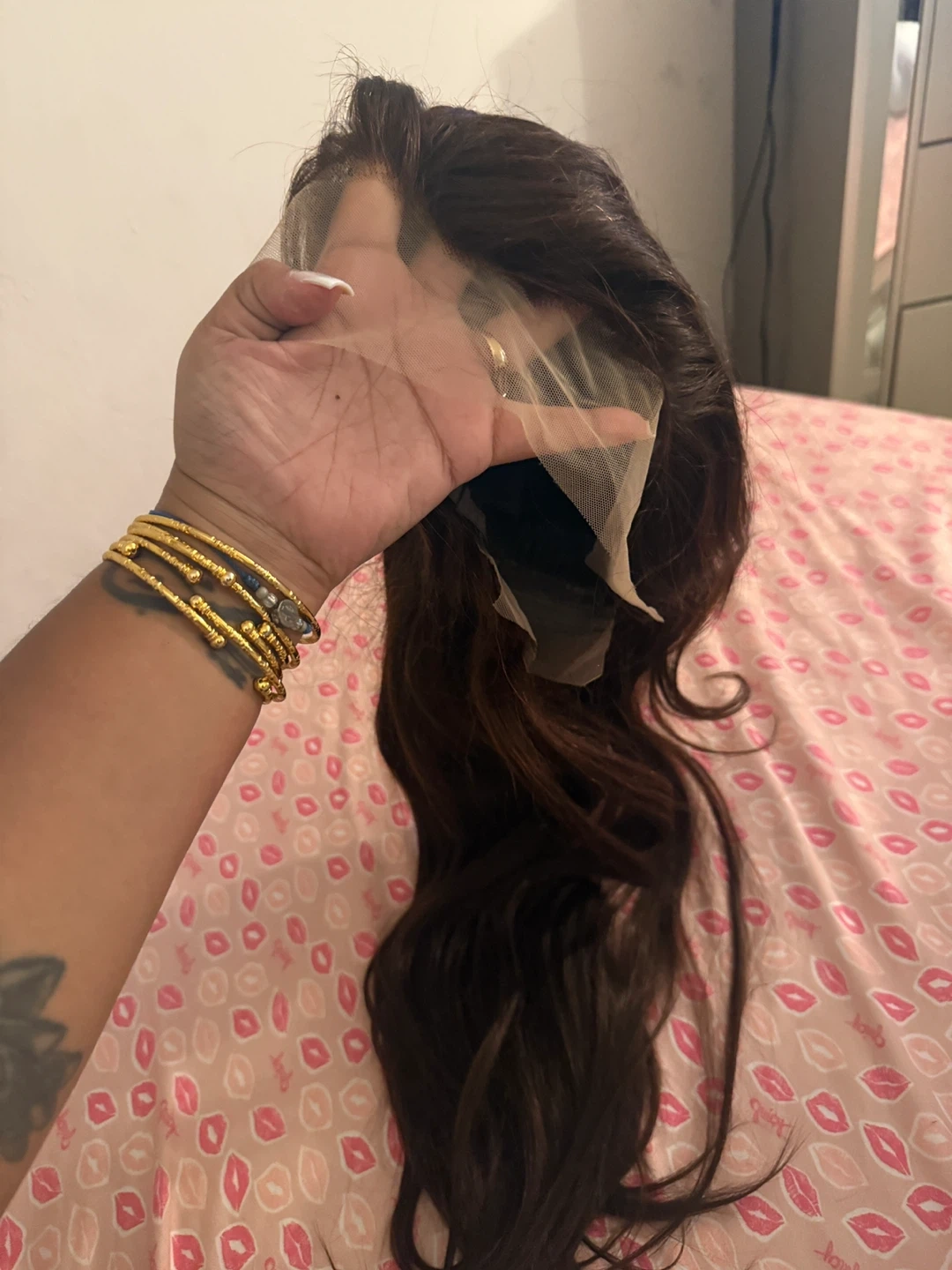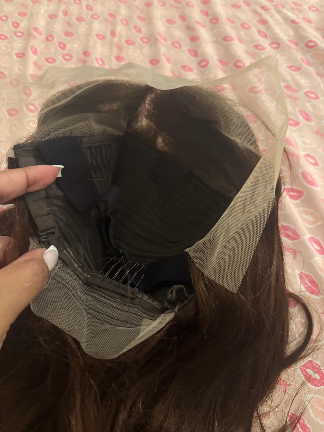 Selling a brown lace front wig. It appears to be in good condition with a natural-looking hairline. The wig has combs and adjustable straps for a secure fit, conditions NEW 30” inch human hair 13x4