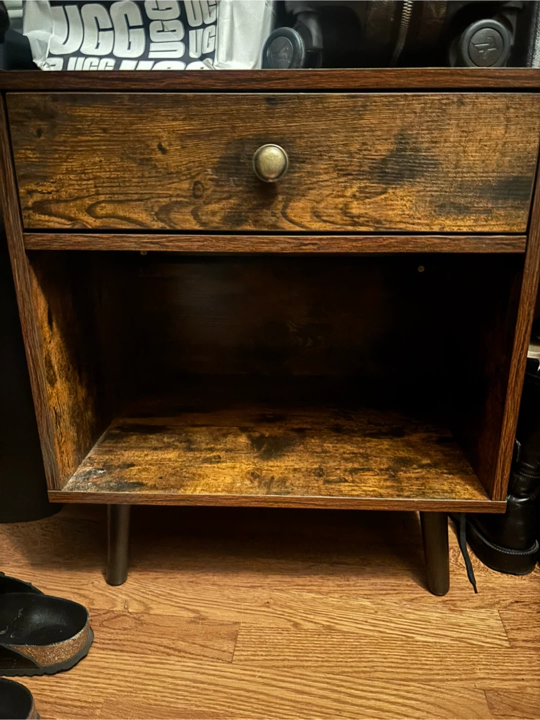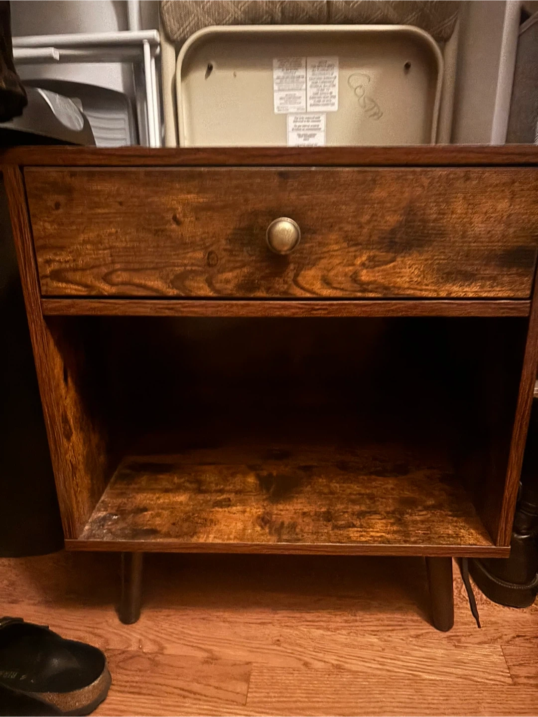 23I'm selling a cute nightstand with a drawer. It's in good condition and would look great in any bedroom! It features a drawer for storage and an open shelf below. Cash only, pick up from midtown east.
