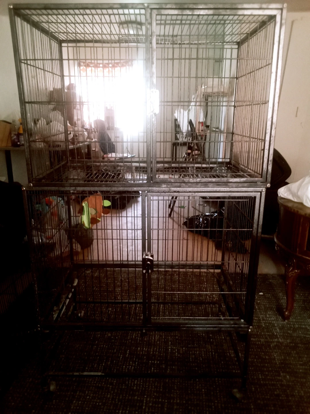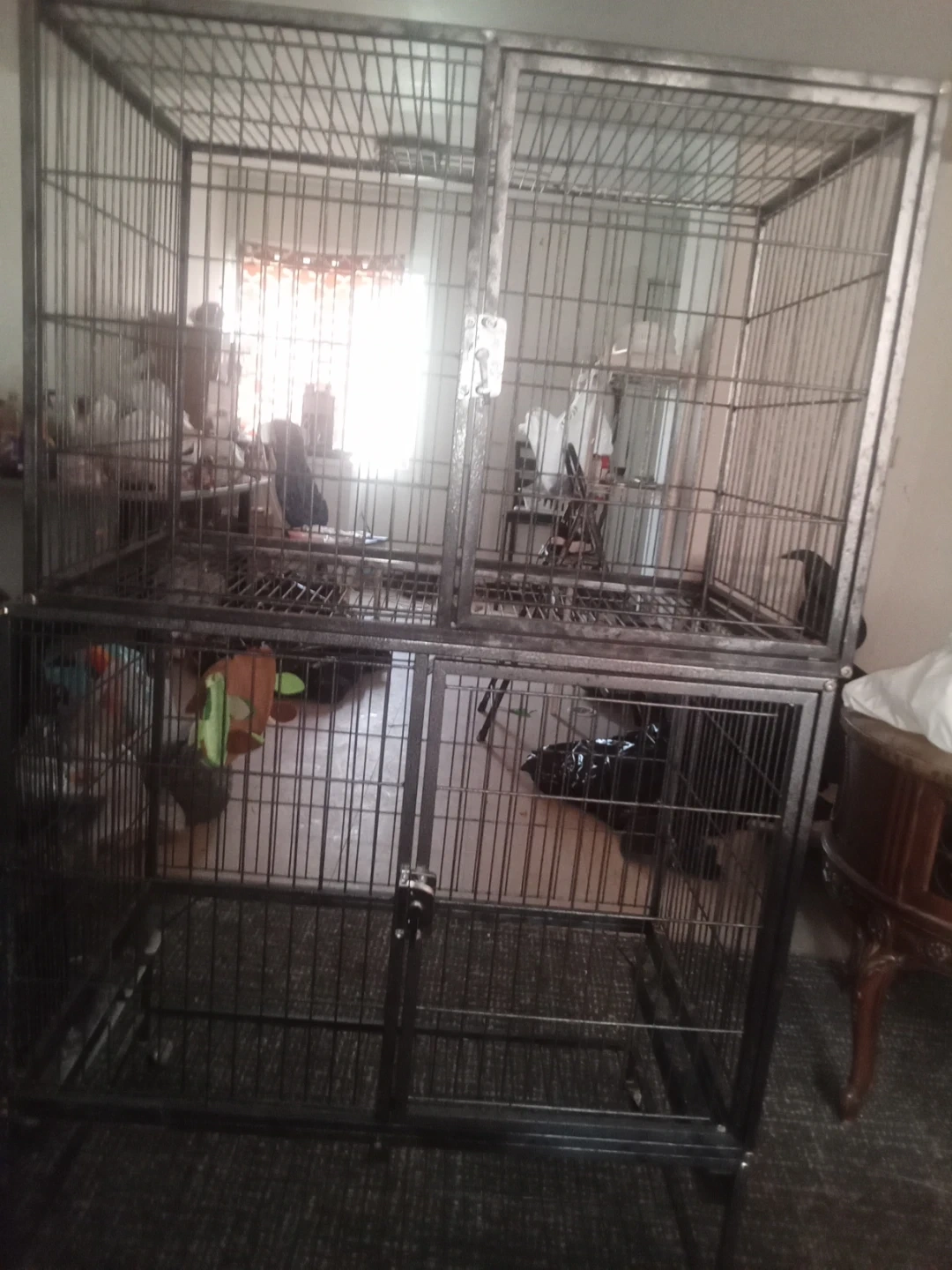 Both these cages are missing there trays the big one is also missing four screws that attach it to the bottom one but nothing to hard to replace both cages are 120 together while alone the small one is 10$