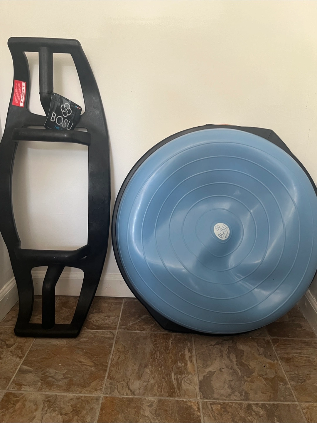 Selling a BOSU balance trainer, great for core workouts and improving balance! It comes with the platform, making it easy to store and use. Add some fun and challenge to your fitness routine with this versatile piece of equipment