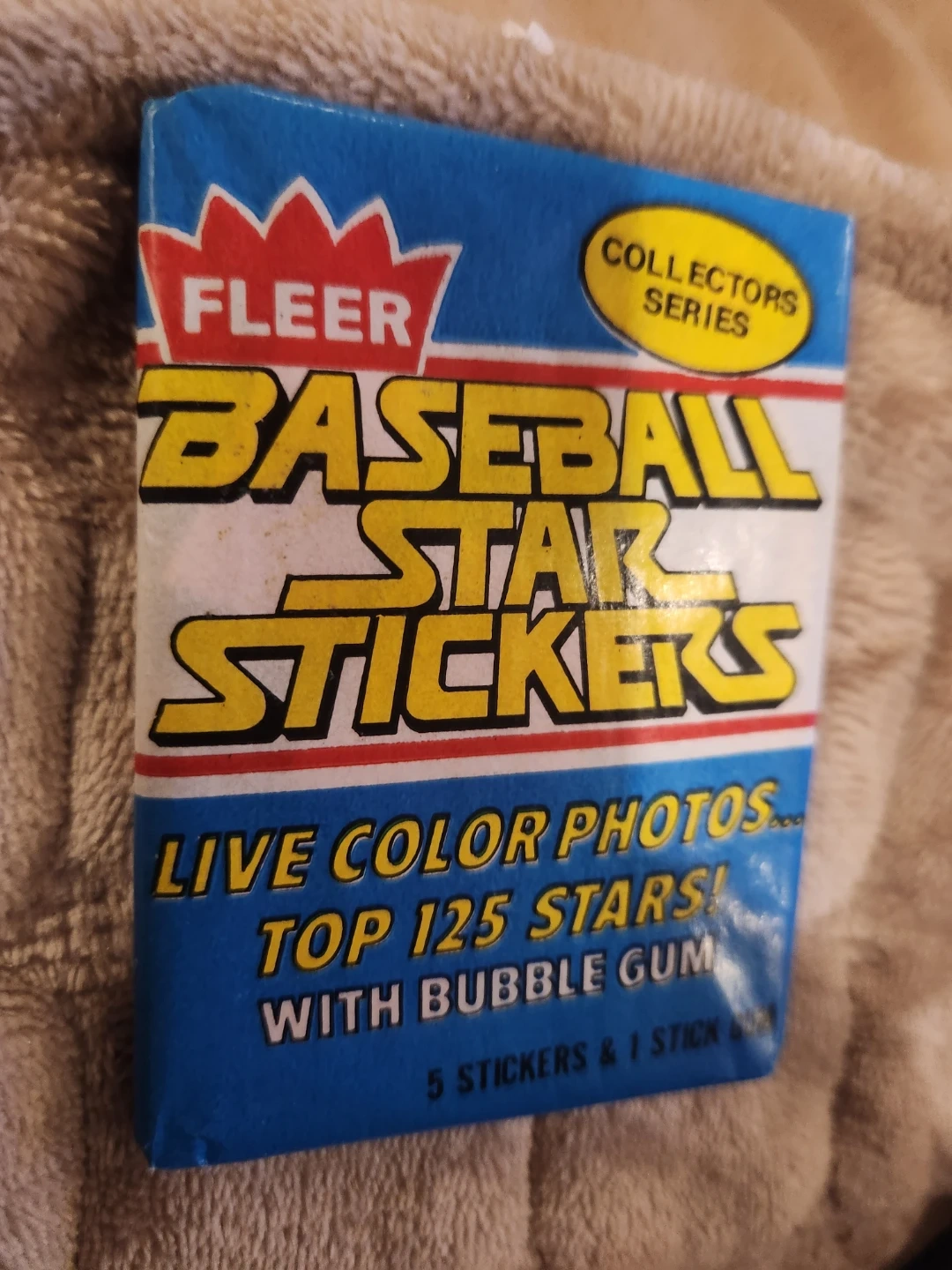 This pack includes 5 stickers and 1 stick of gum. It features live color photos of the top 125 stars. It's part of the Collectors Series.