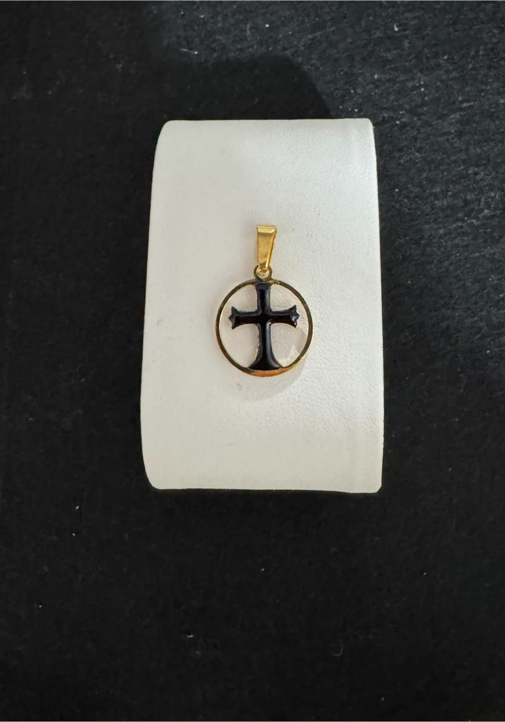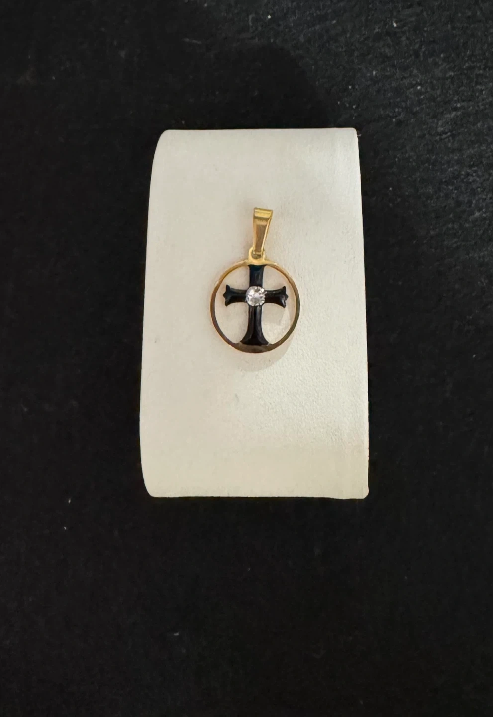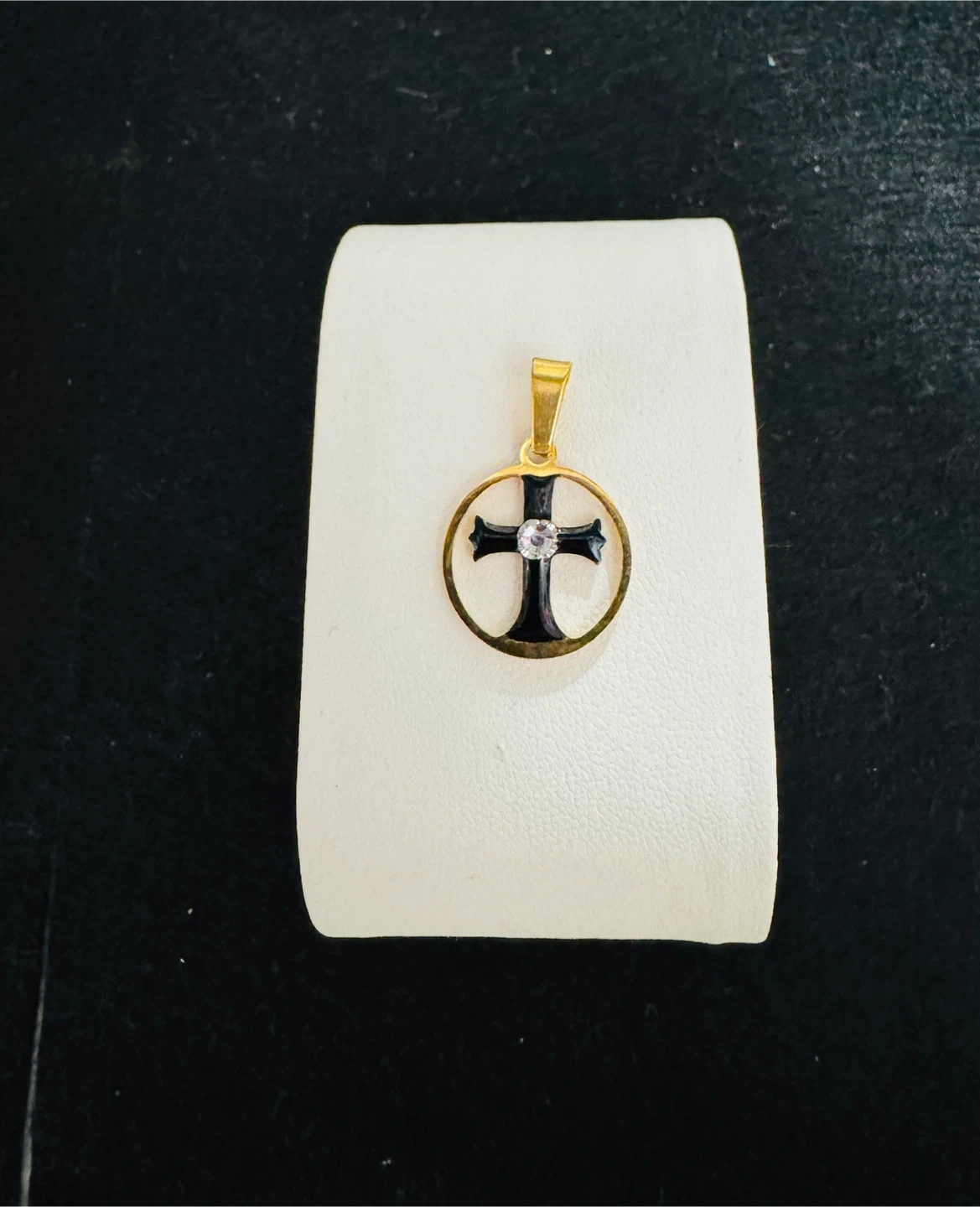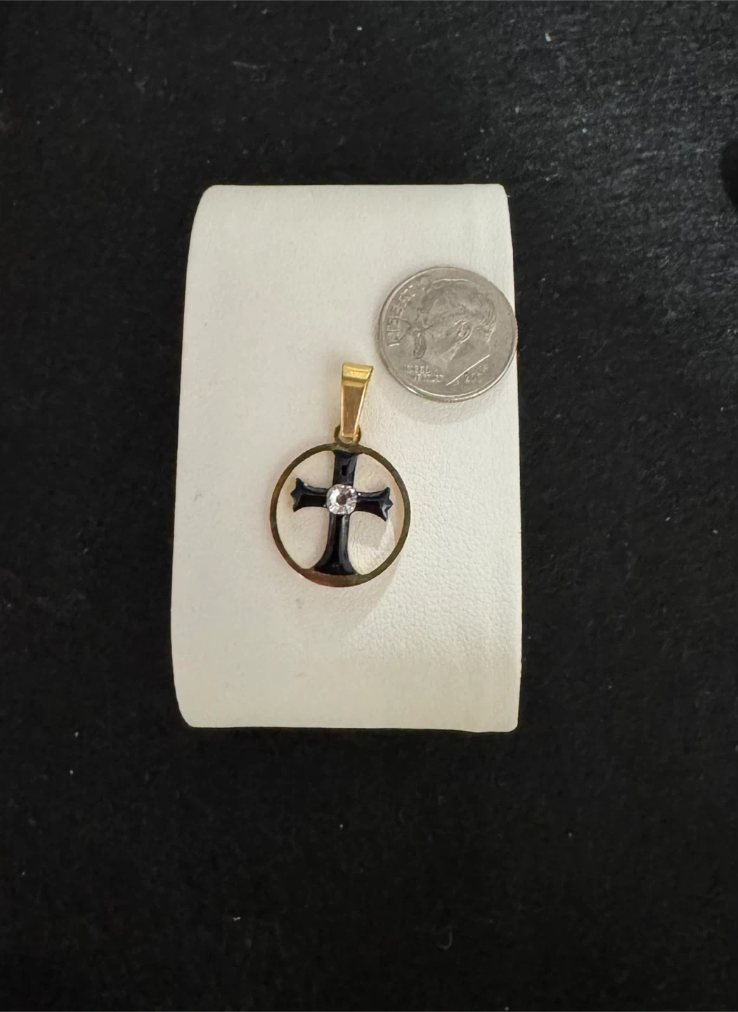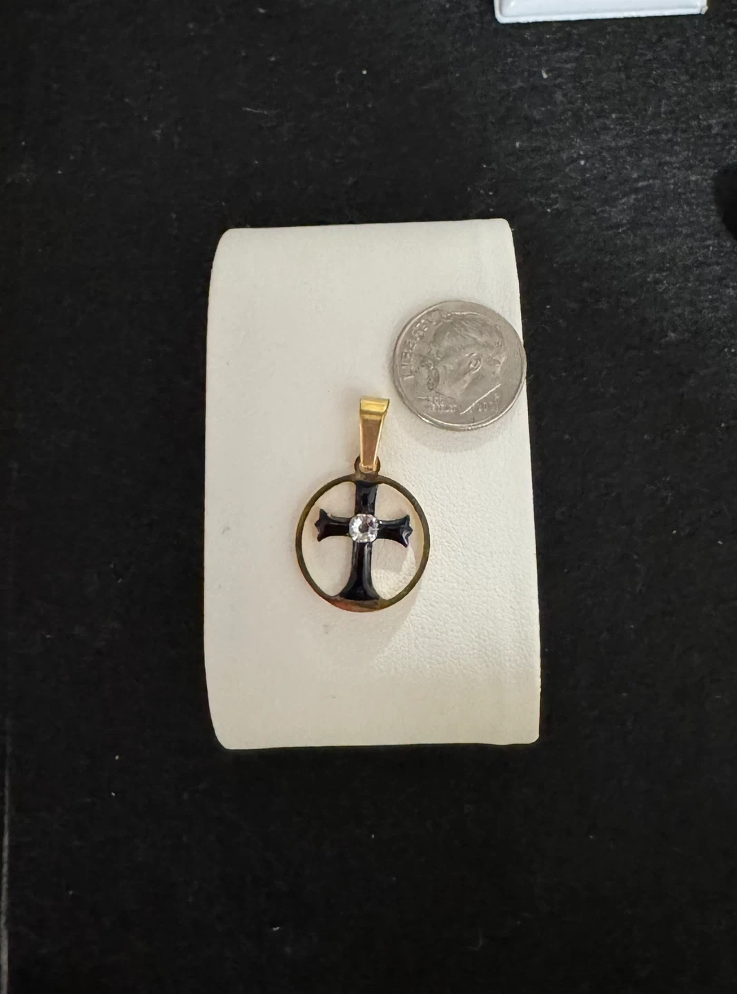 π Black Enamel & Clear Stone Gold Cross Pendant with
