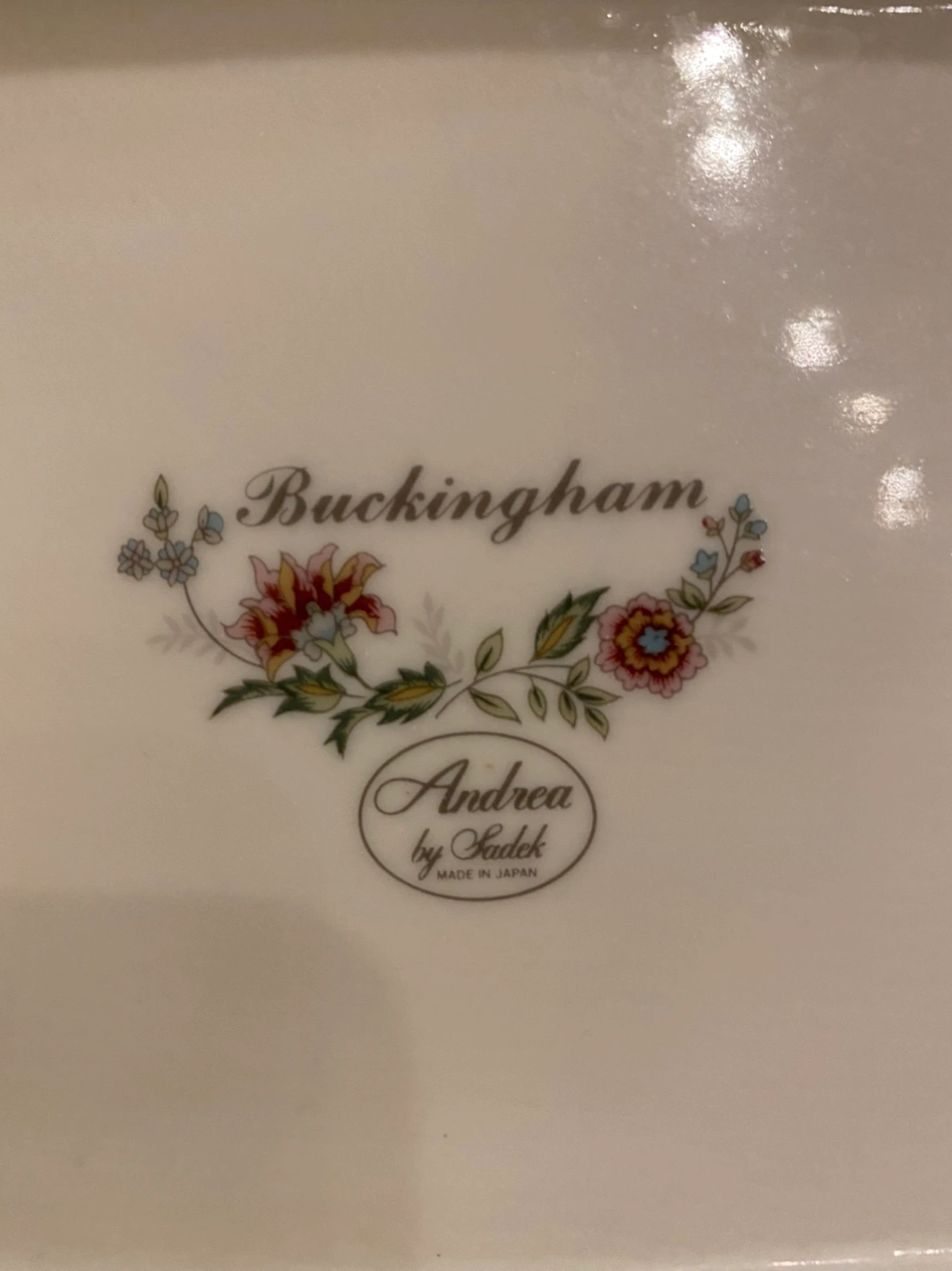 10Buckingham Andrea by Sadek Plate -It was in the display cabinet -Used only a few times. -Length (radius): 14.5 x 7 inches -Original price is $40 If you want more plates like these, search for my other listings.
