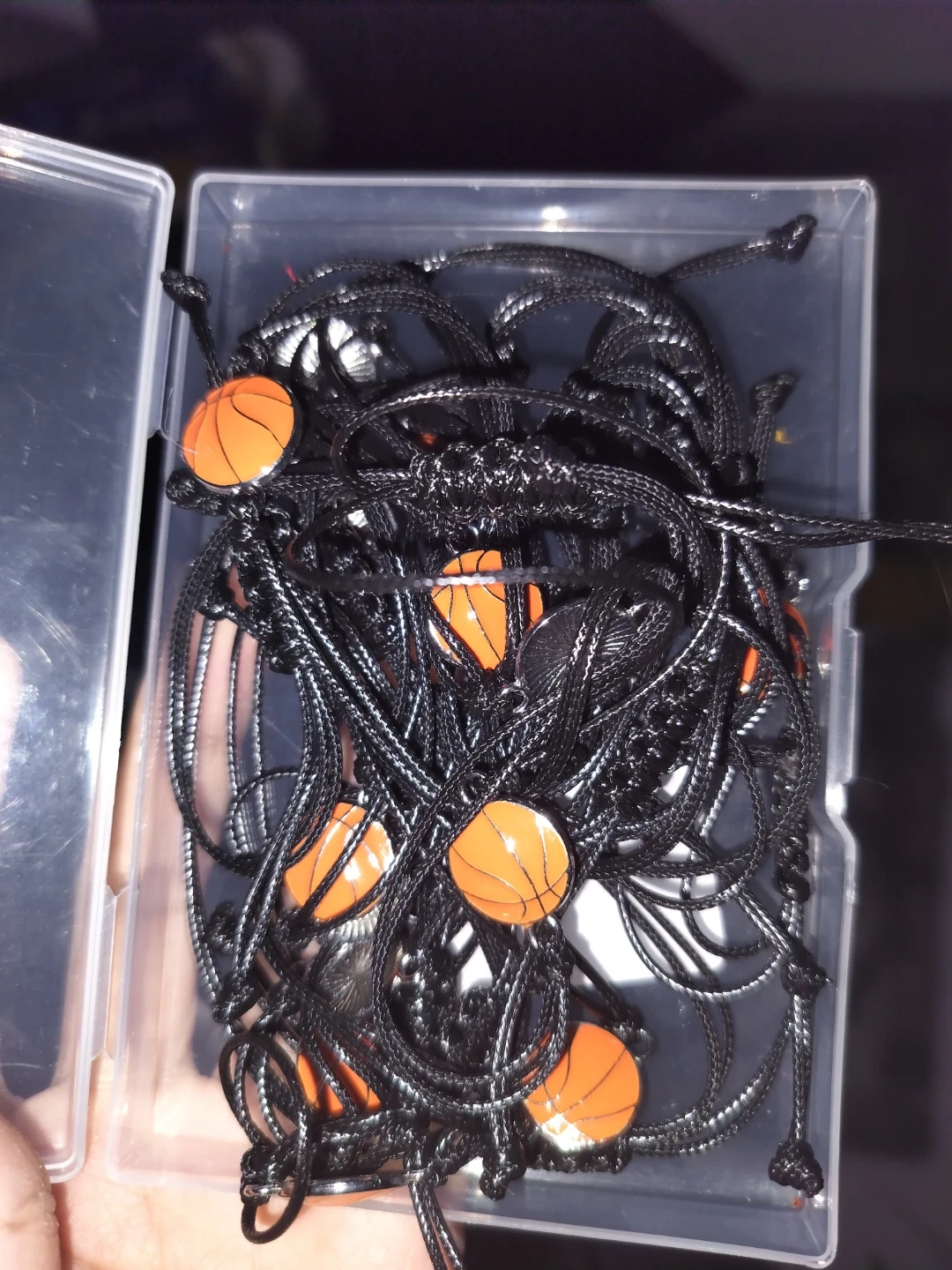 Pack of 10 adjustable black cord bracelets, each with a tiny basketball charm. These are great for party favours or small gifts. The cords are adjustable to fit most wrist sizes. It's a fun way to show your love for the game!