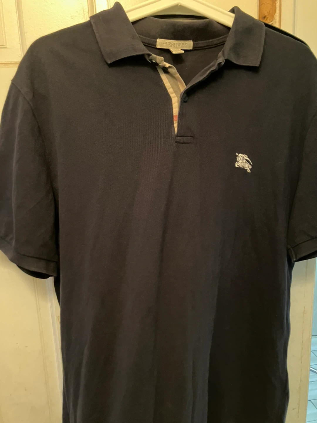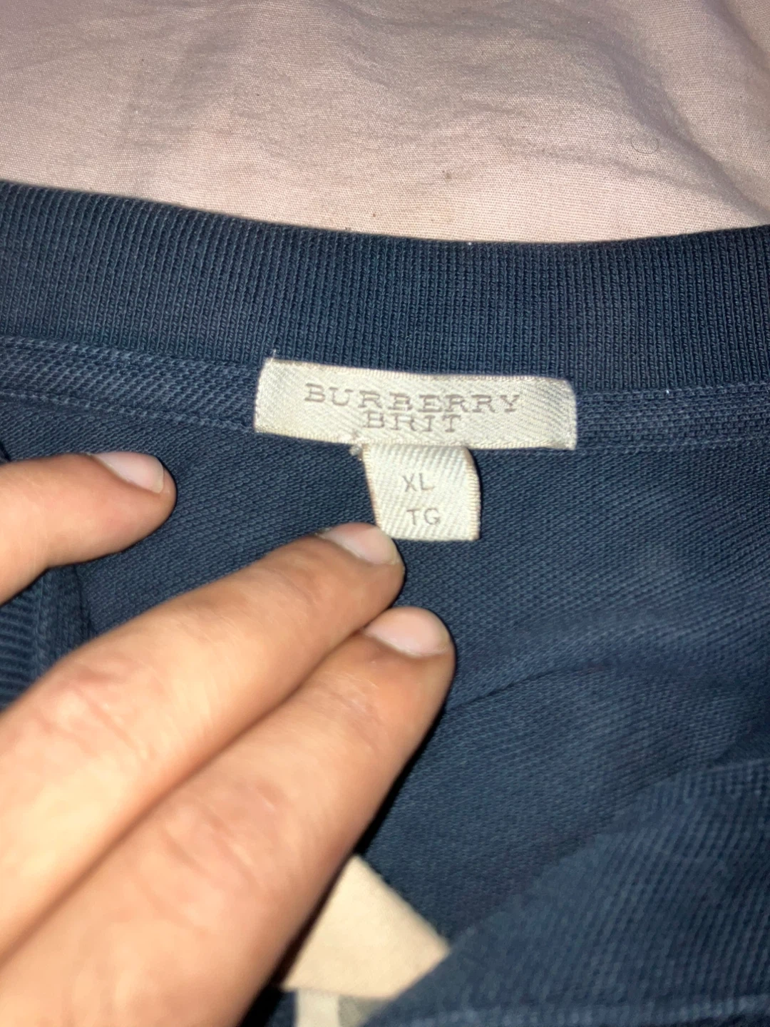 Selling a Burberry Brit polo shirt in size XL but fits like a L. It's a classic navy blue color and in ok condition. Perfect for a casual yet stylish look