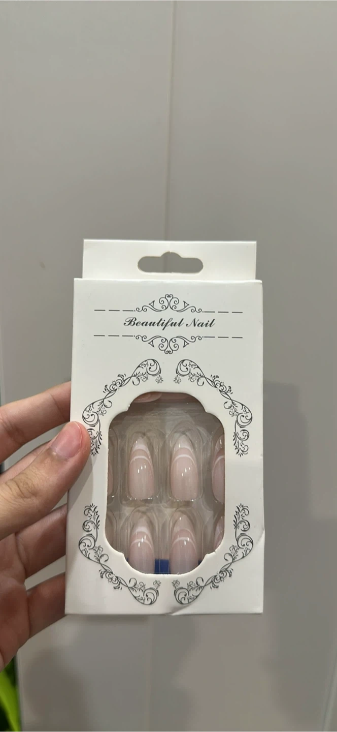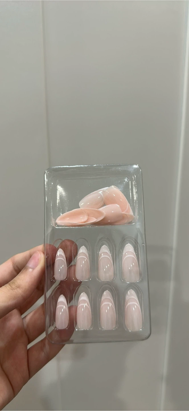 New press-on nails – long almond shape, light pink with white French tips. Comes with a nail file (no glue included). Never used, still in packaging. $10 OBO.