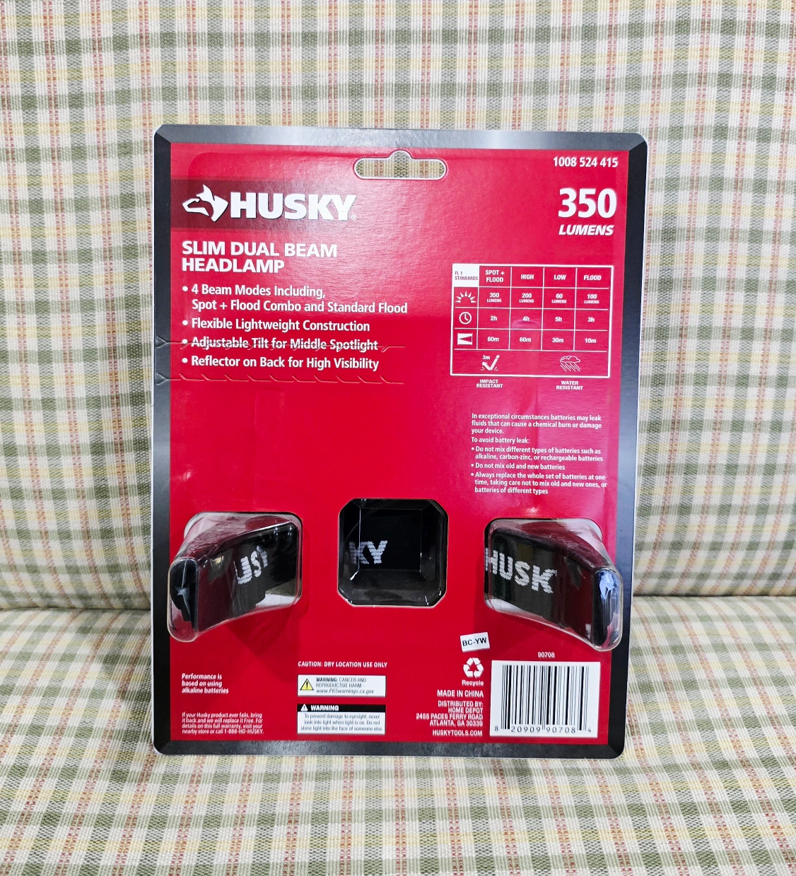 This Husky slim dual beam headlamp offers 350 lumens and 4 beam modes.