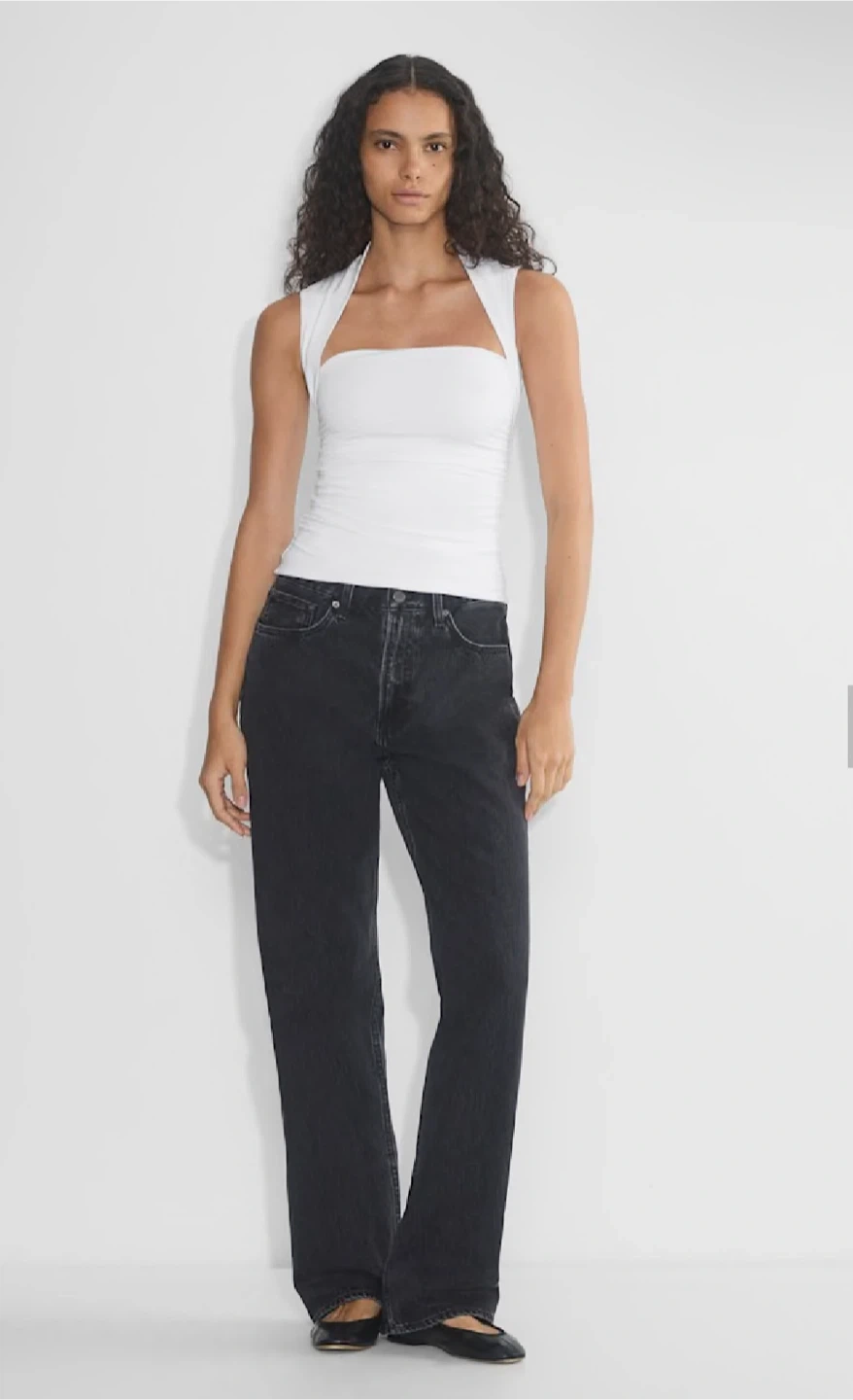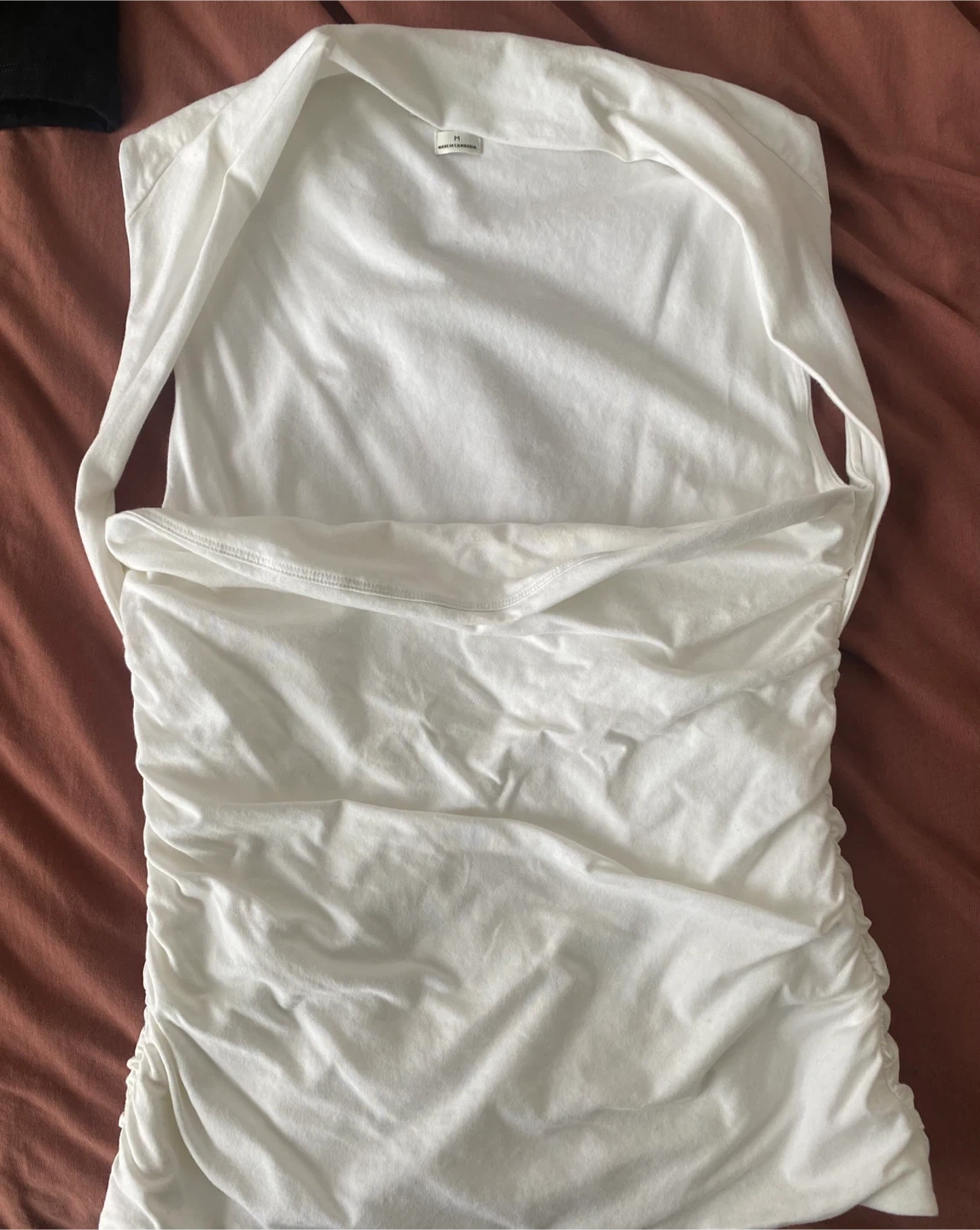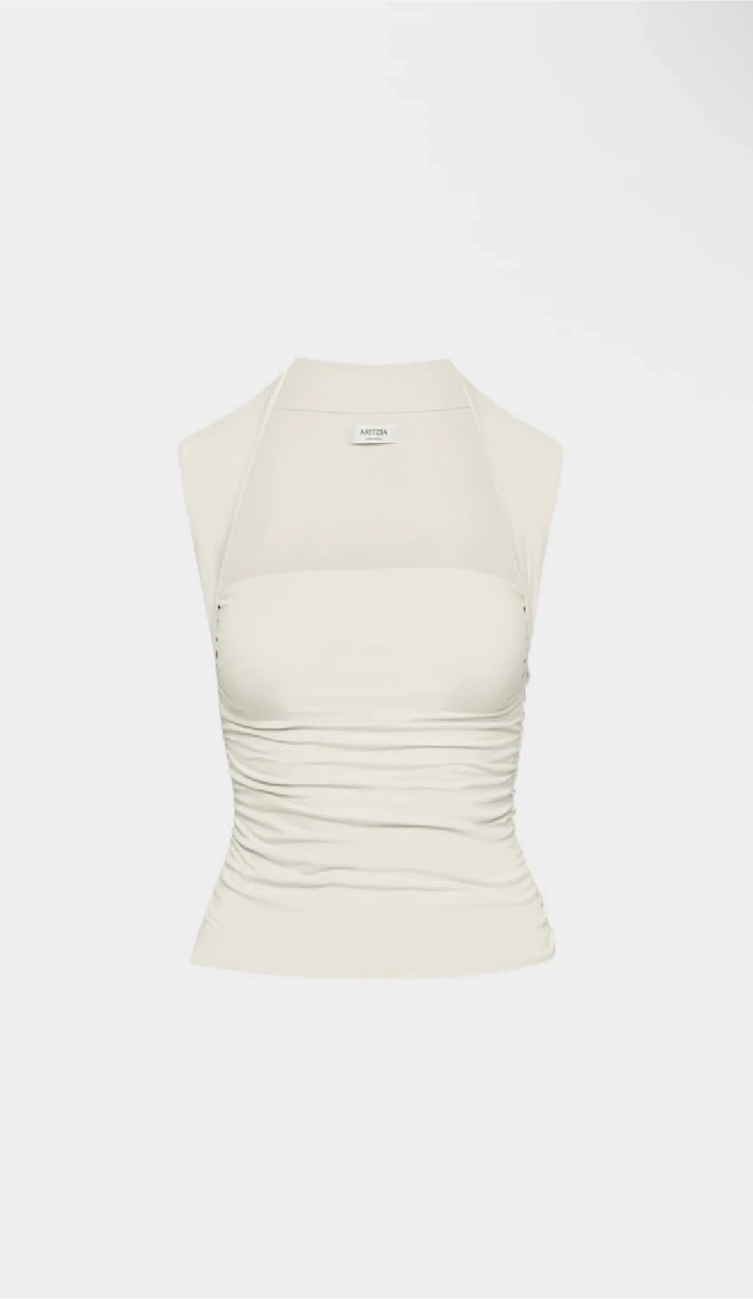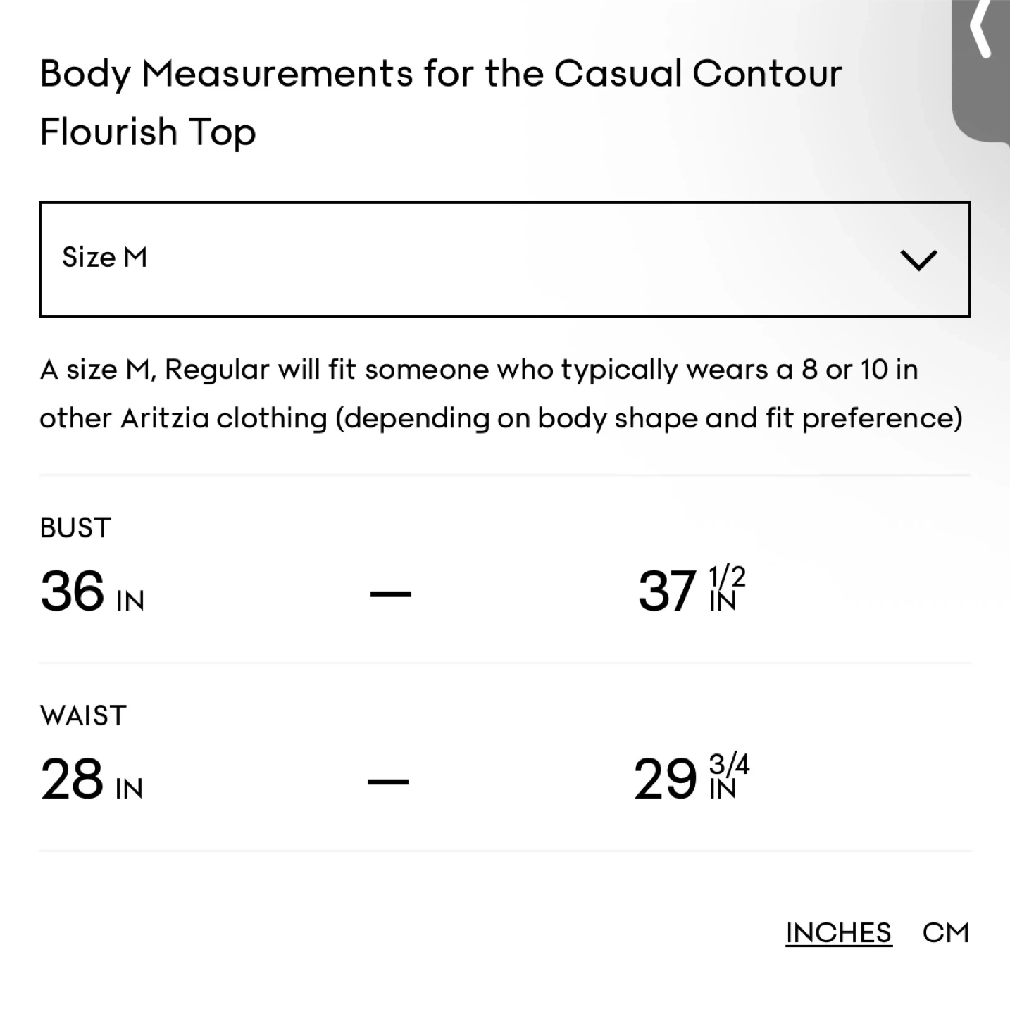This is an Aritzia Casual Contour Flourish Top. It's a size medium. Material is a stretchy blend, perfect for layering or wearing on its own.