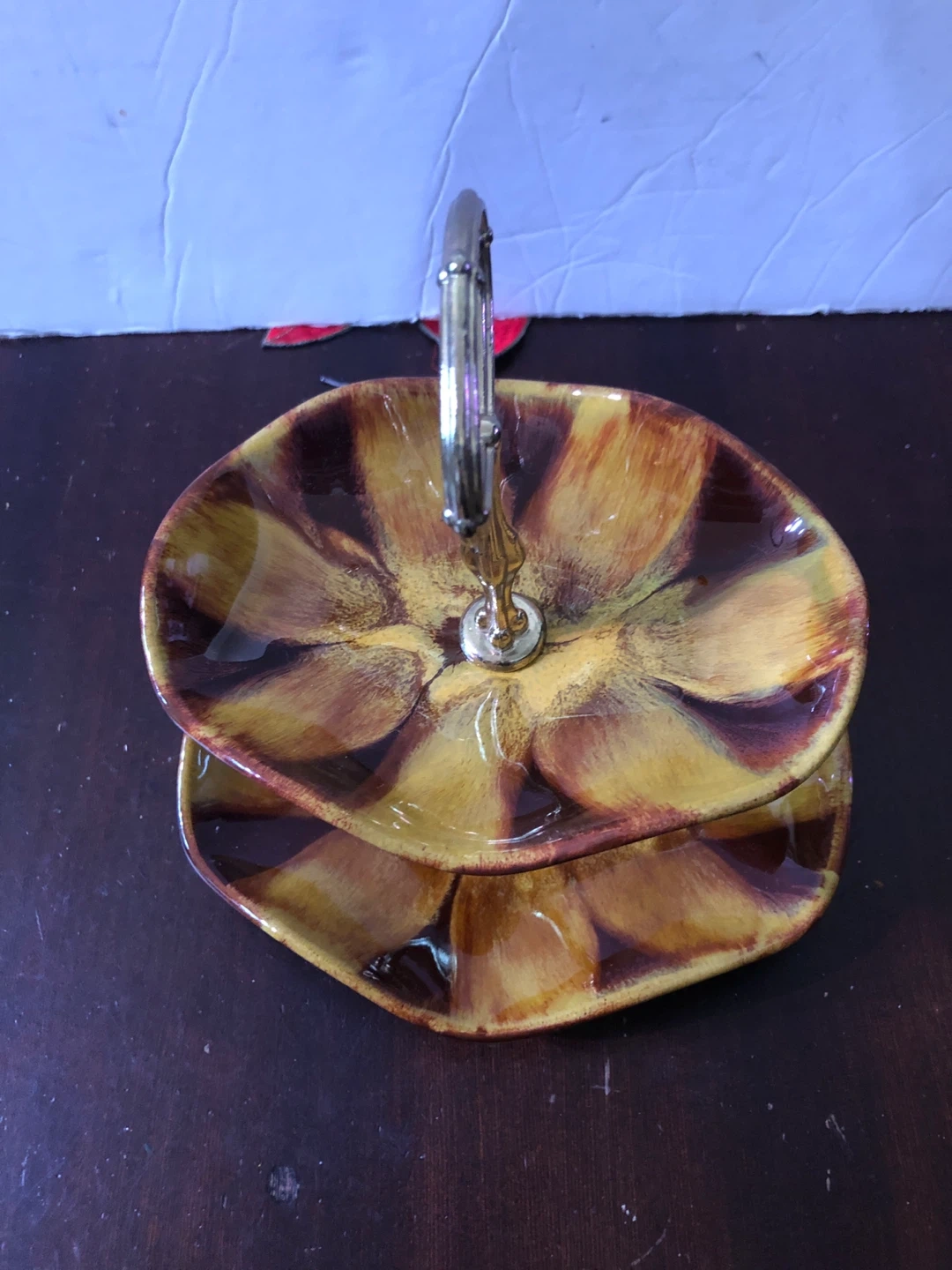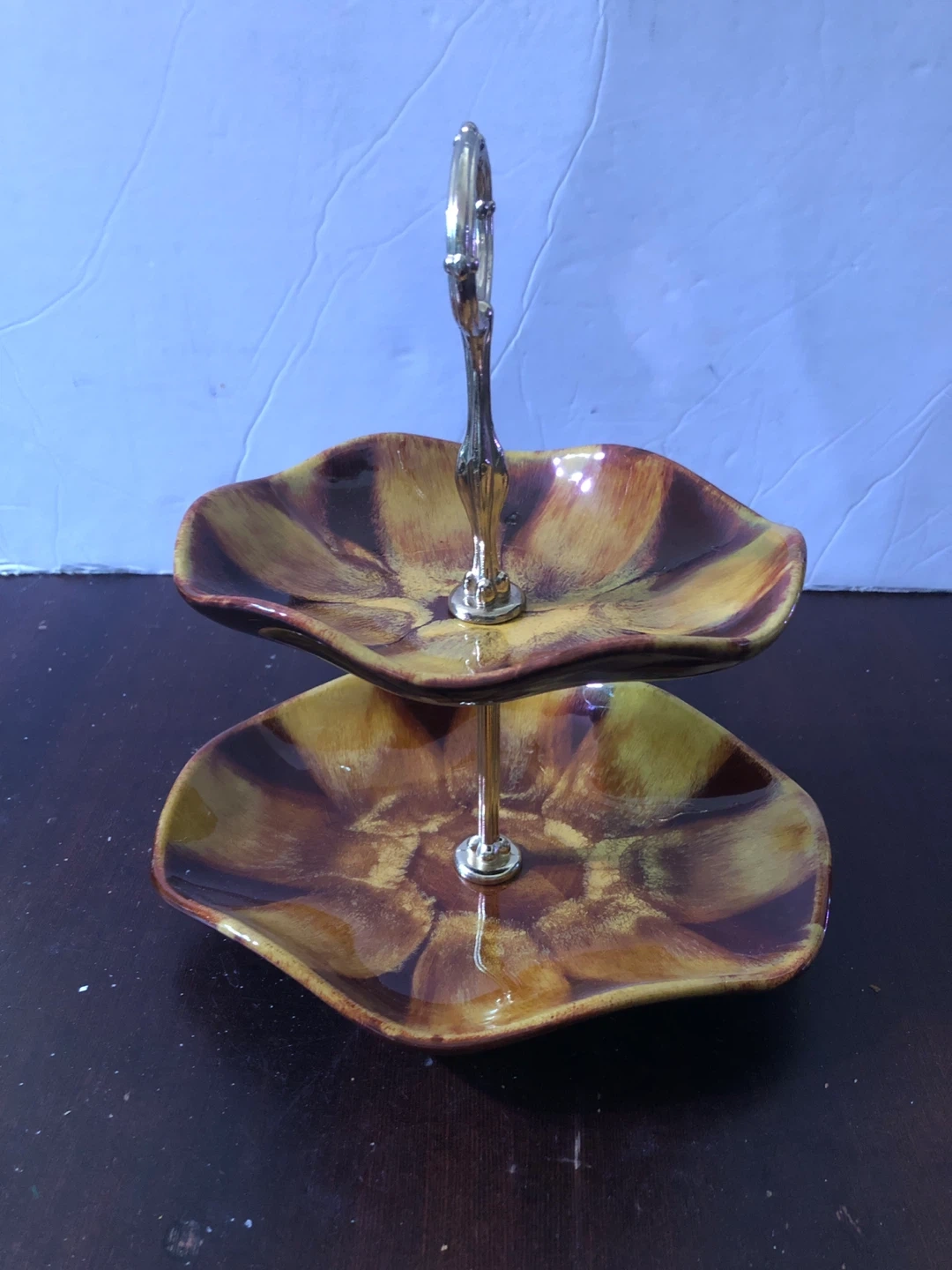 Vintage Blue Mountain Pottery Canada Harvest Gold Two Tier Food Stand.