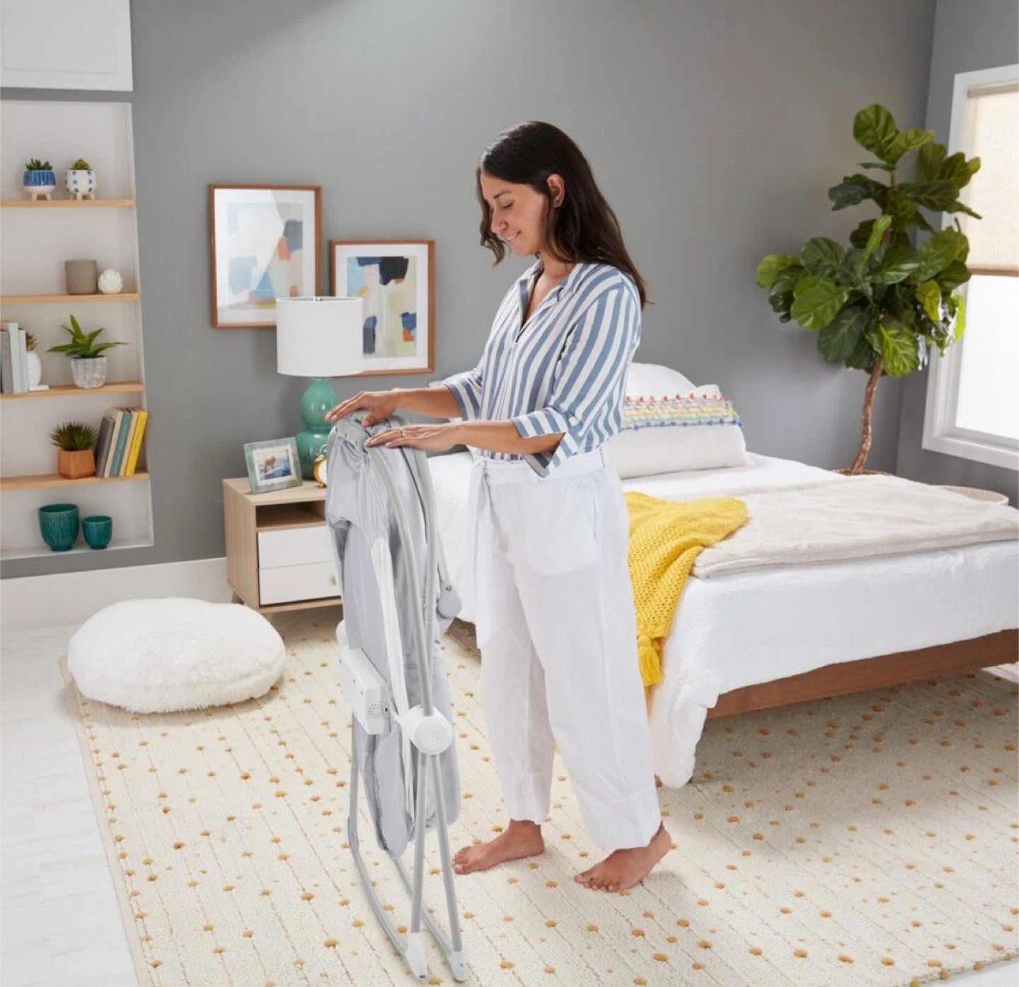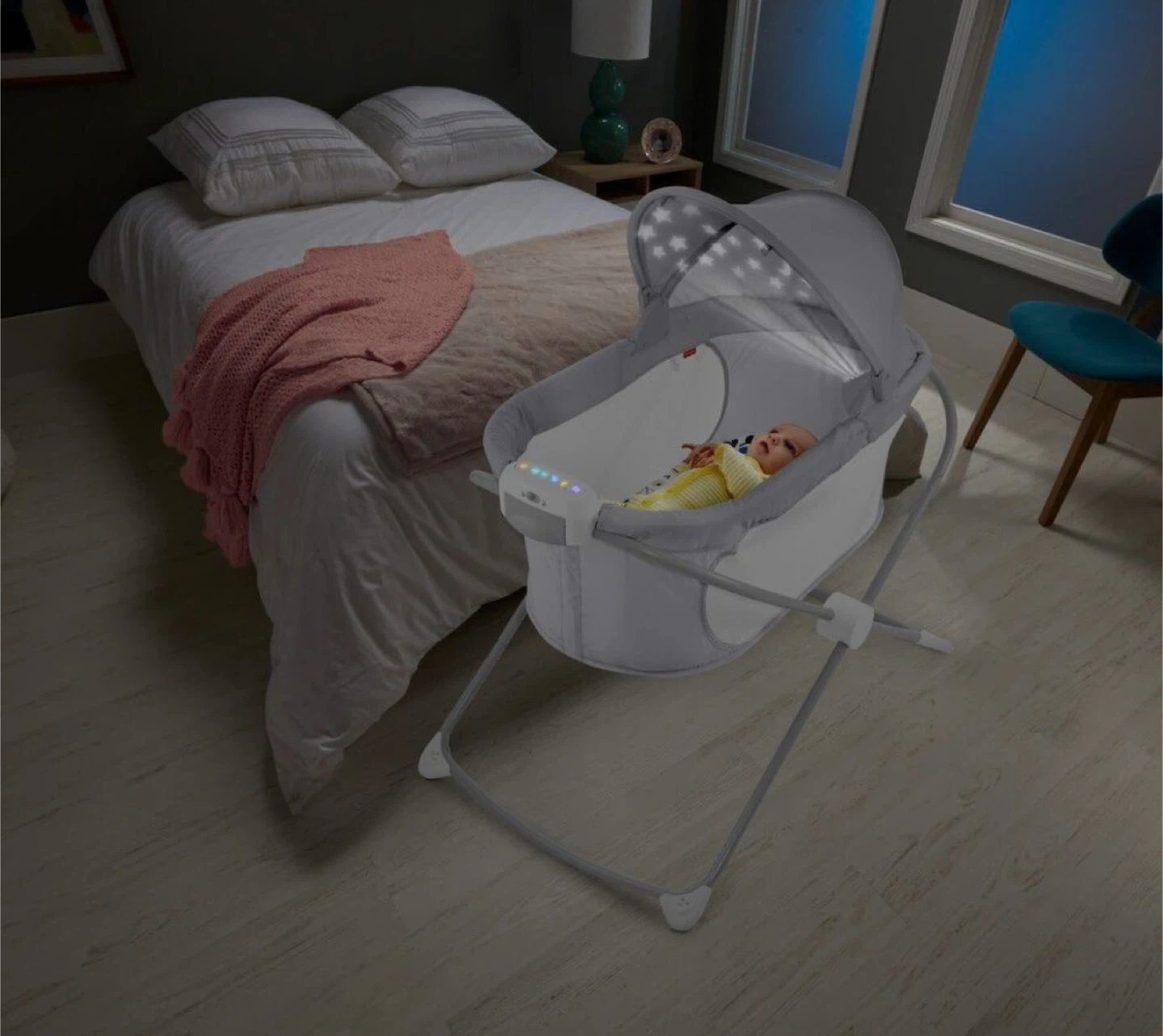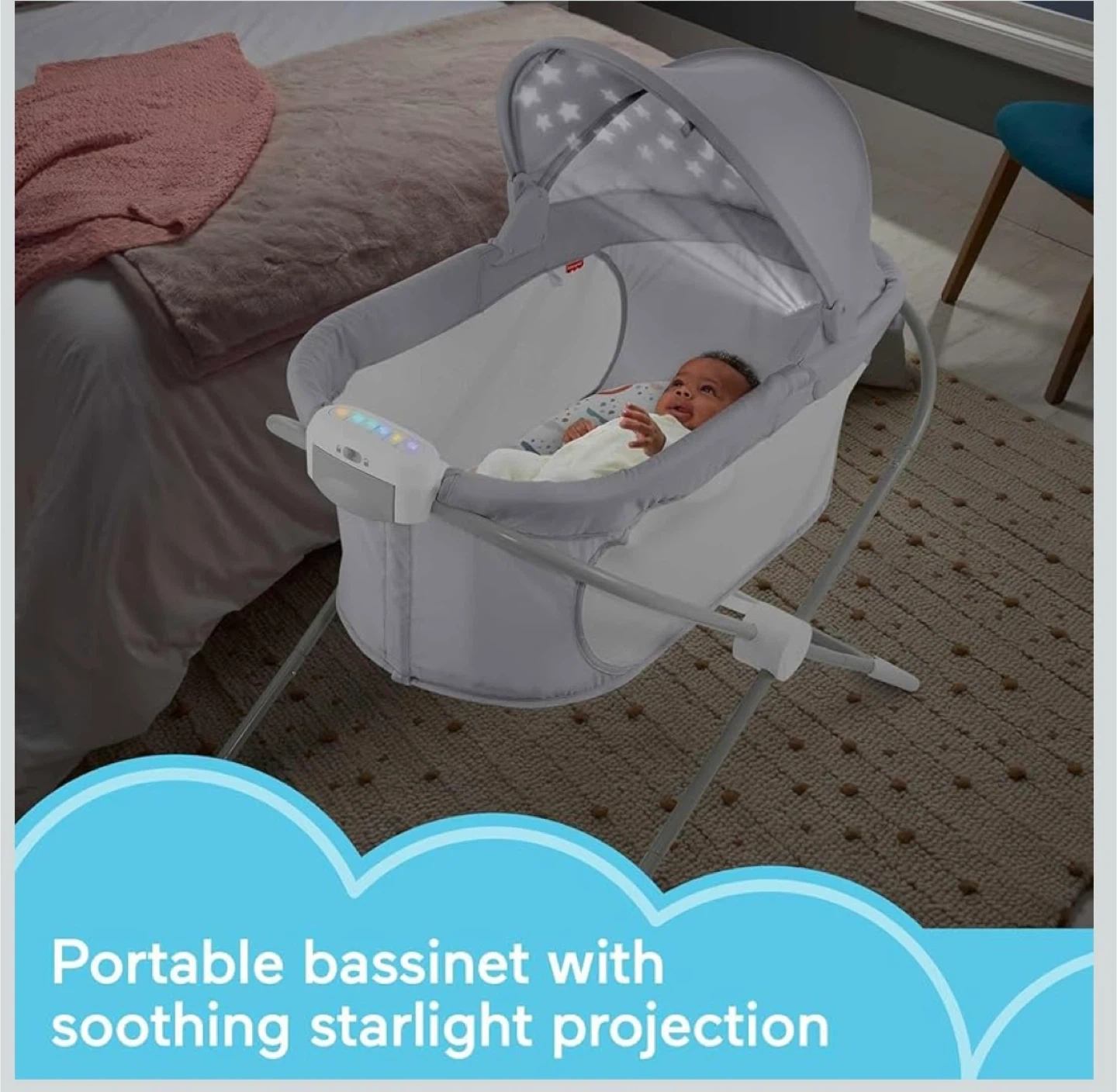 This Fisher-Price bassinet offers soothing motions and music for your little one. It's made with a comfy mattress and a washable fabric liner. The canopy is adjustable and it folds easily for storage.