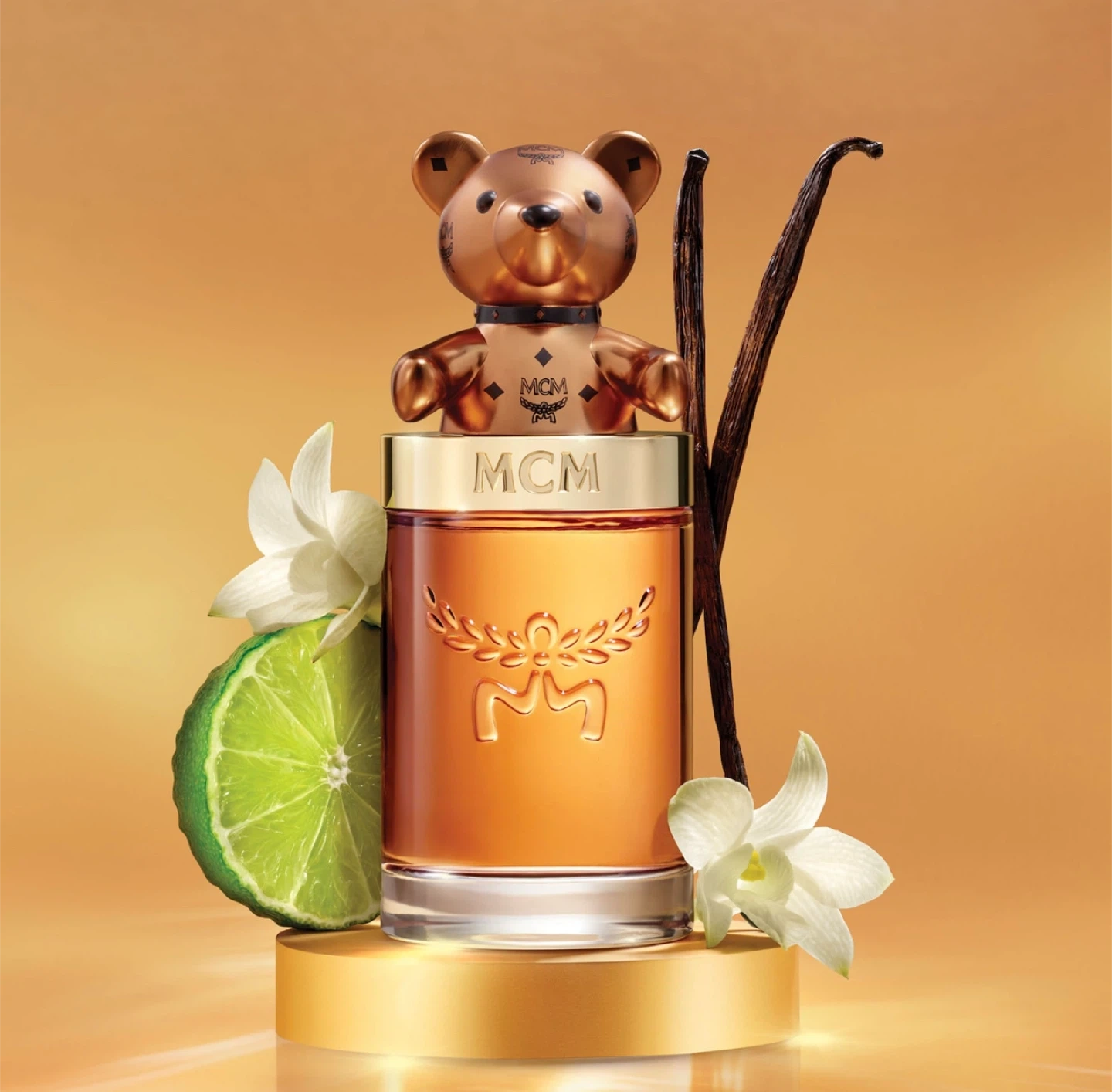 This MCM fragrance comes in a unique teddy bear-shaped bottle. It features a captivating scent with notes of vanilla, lime, and orchid. The bottle itself is a statement piece, perfect for display.