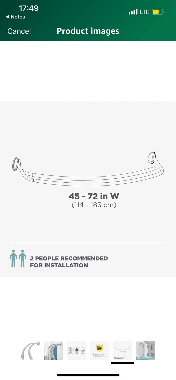 * ADJUSTS TO FIT IN YOUR TUB OR SHOWER: Rod extends to fit any standard-sized shower space from 45 in. to 72 in. and holds secure after permanent mount installation