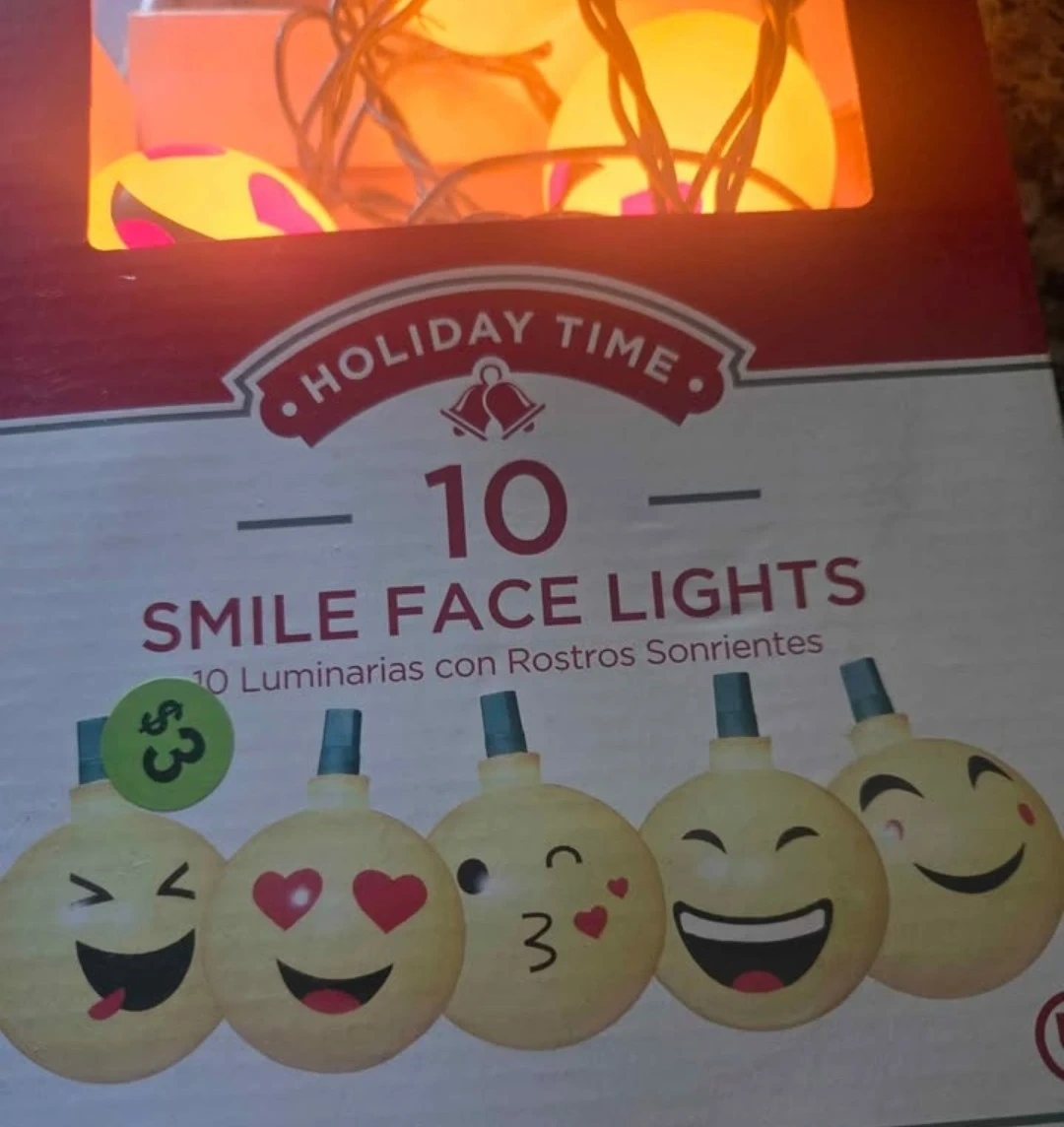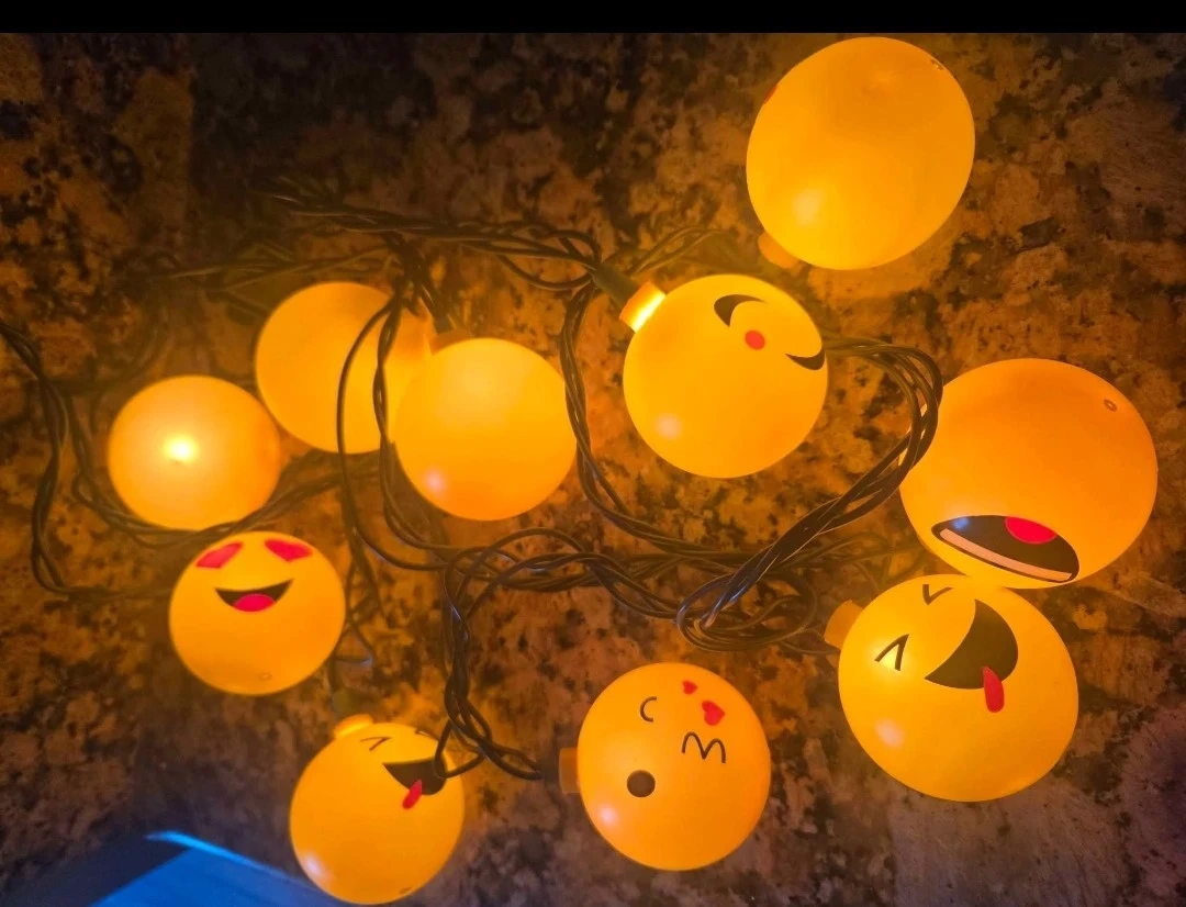 Set of 10 smile face lights. Lights are 8.5 ft long. Perfect for adding a fun touch to any room or party!