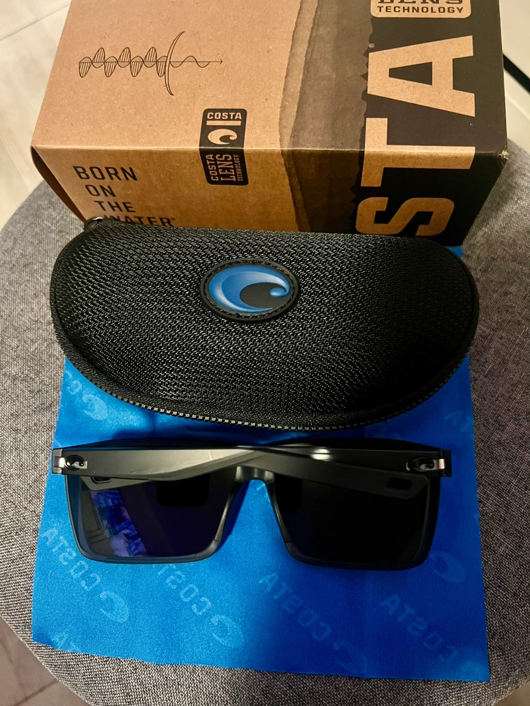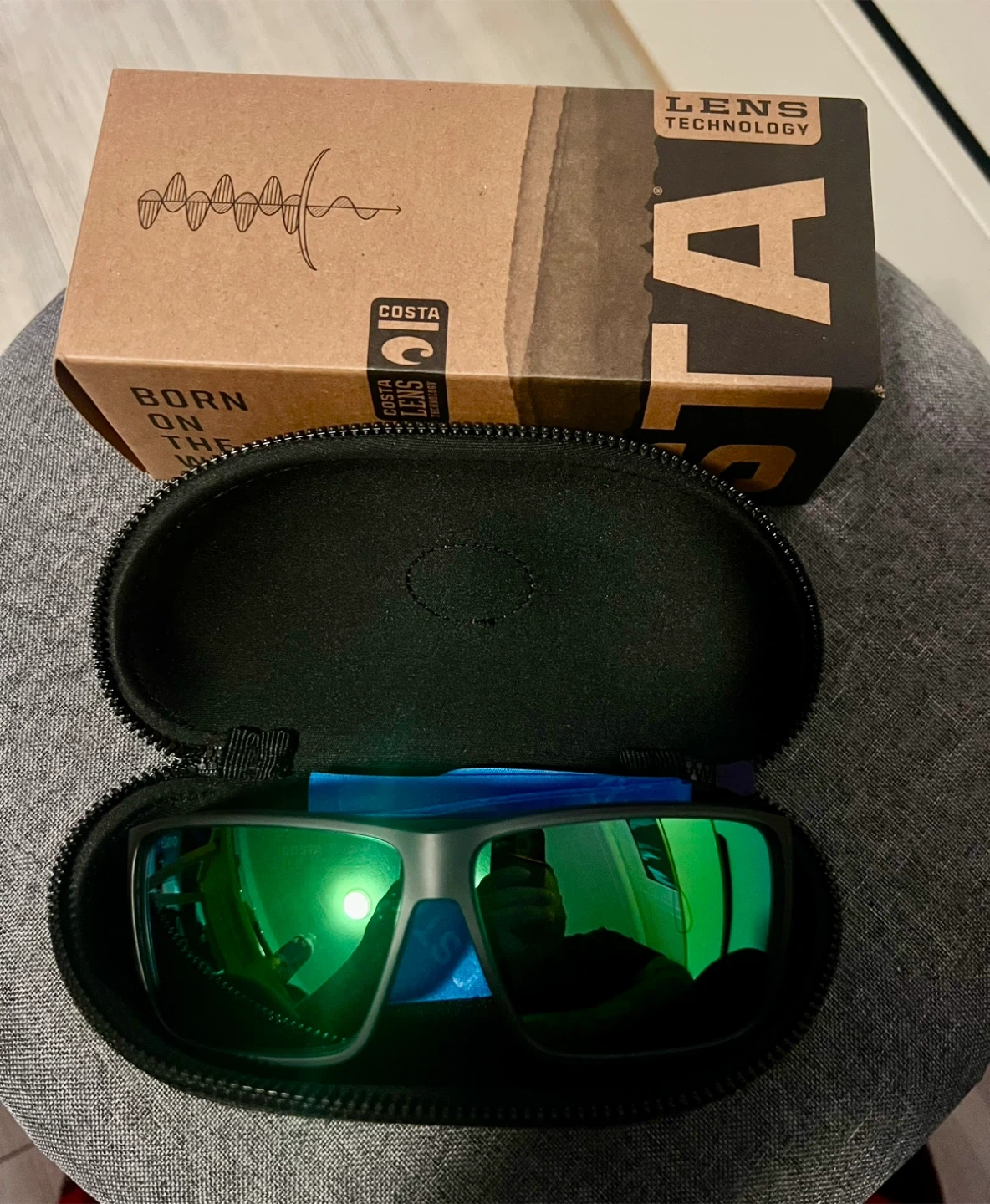 Costa del Mar Rincon II polarized sunglasses. These shades feature green mirror lenses and come with a protective case and cleaning cloth. Must pick up