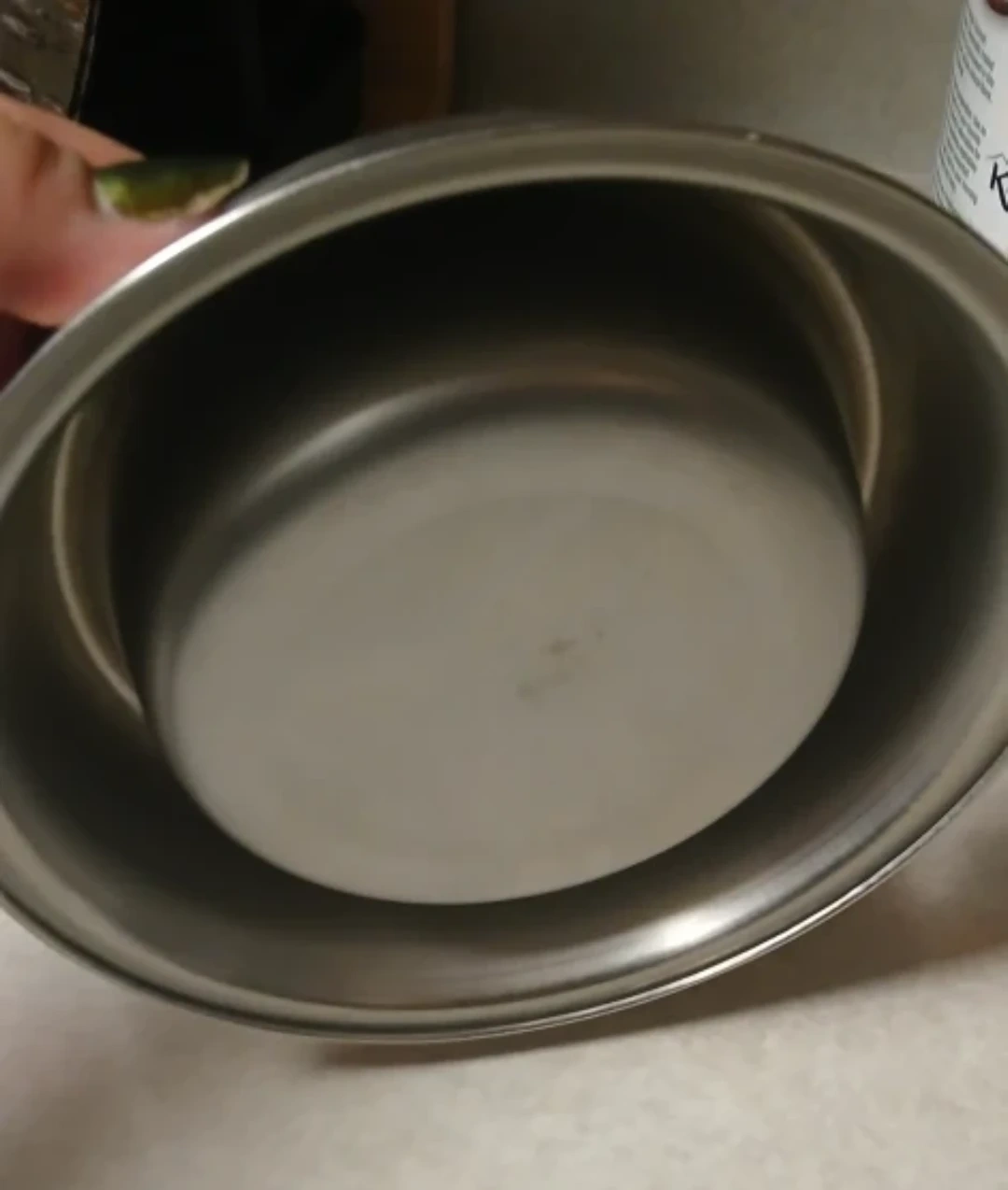 a stainless steel pet bowl. It's in great condition and ready for a new furry friend! Perfect for food or water.