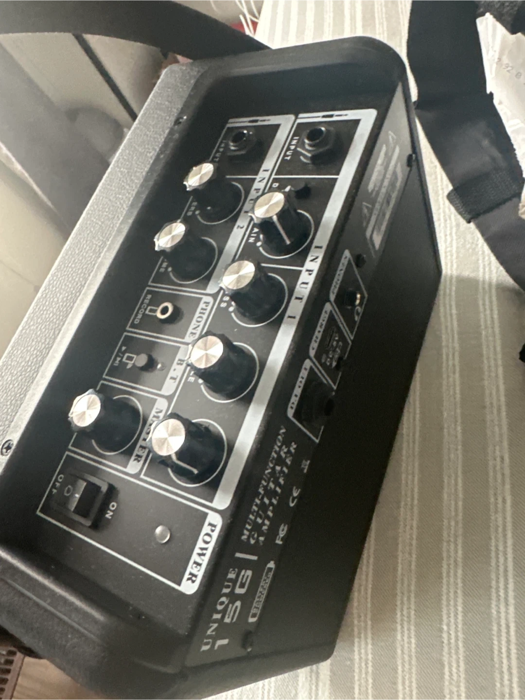 Selling a Unique 1.5G multi-function guitar amplifier. It's in great shape and ready to use! Perfect for practice or small gigs. It has multiple inputs and controls for versatile sound shaping