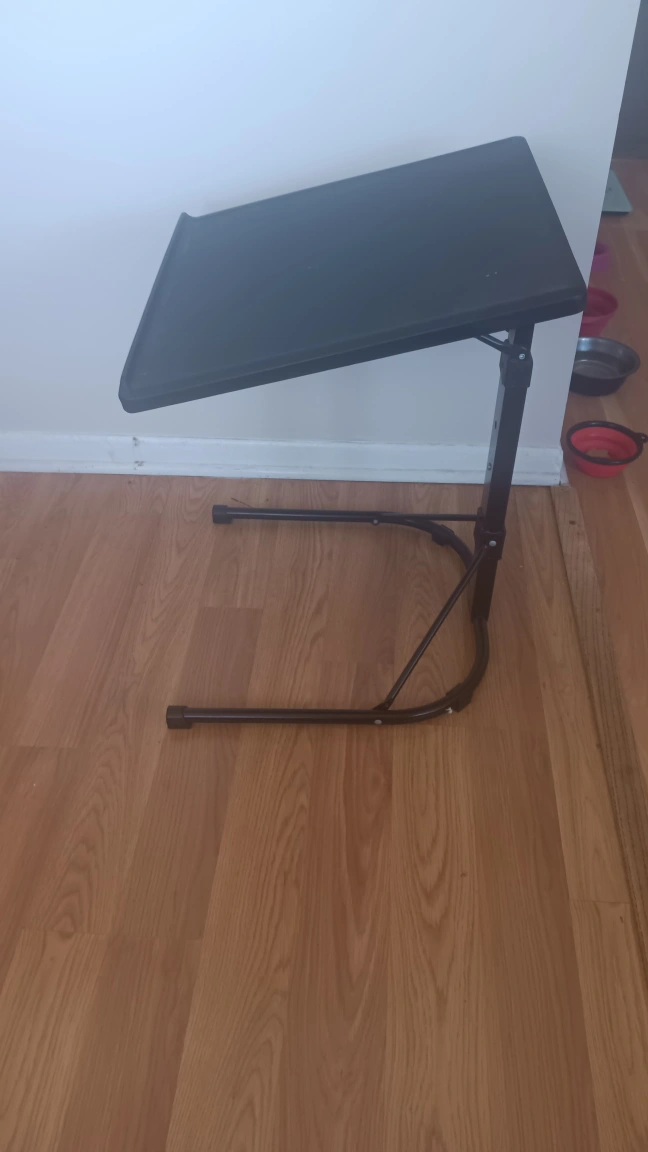 Selling a handy adjustable TV tray table! It's in great shape and perfect for eating, working, or just relaxing on the couch. The height is adjustable so you can find the perfect position for your needs. It's also lightweight and easy to move around the house