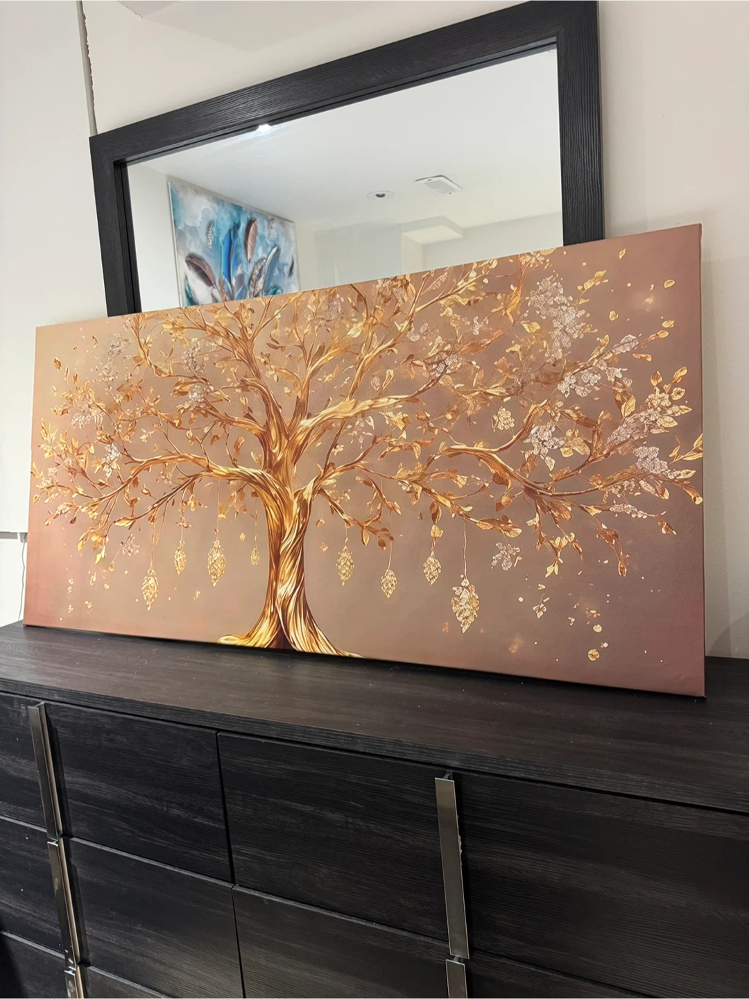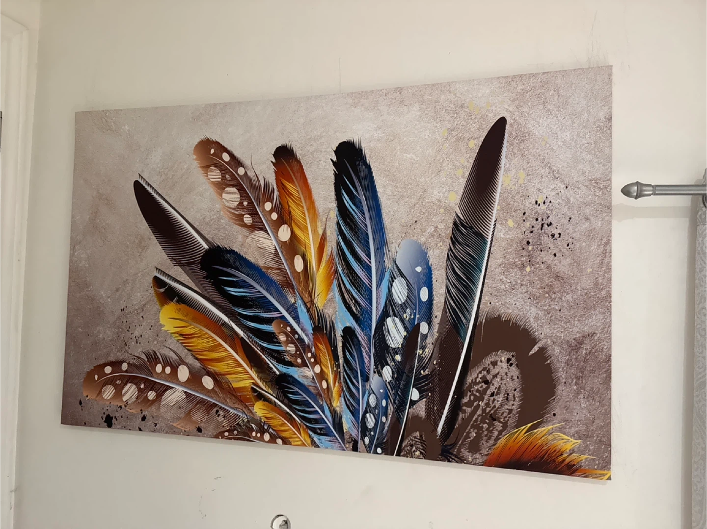 Various decorative canvas prints featuring trees, feathers, and a Ganesha design. These art pieces are ready to hang and add a touch of style to any room. Available in a range of designs to suit your decor.