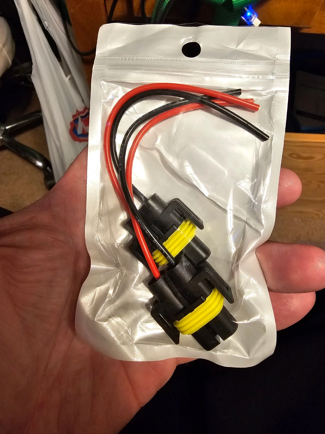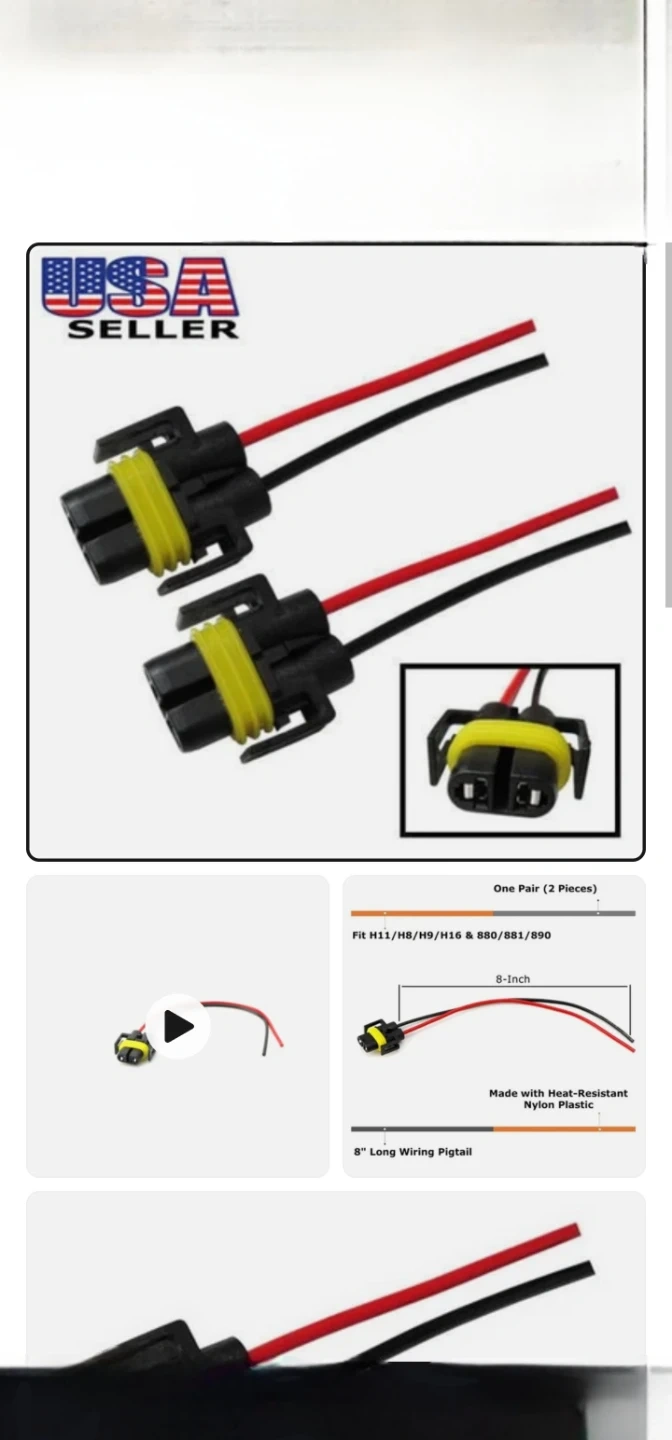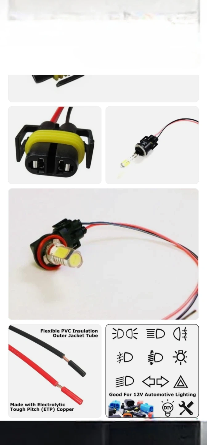 Set of two automotive lighting wire H11 harness adapters. They're designed for 12V systems and feature 8-inch long pigtails. Made with heat-resistant nylon plastic and flexible PVC insulation over ETP copper wires.