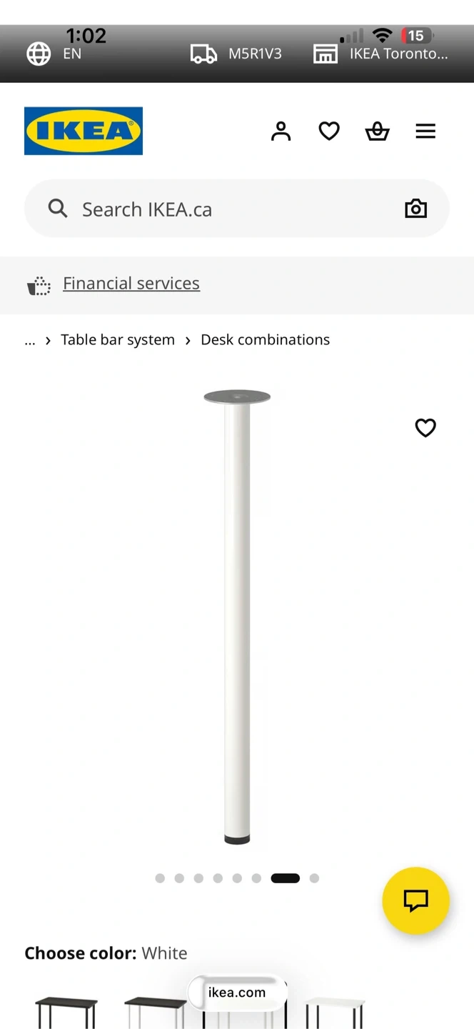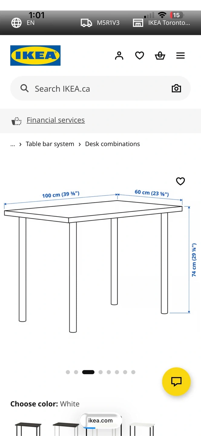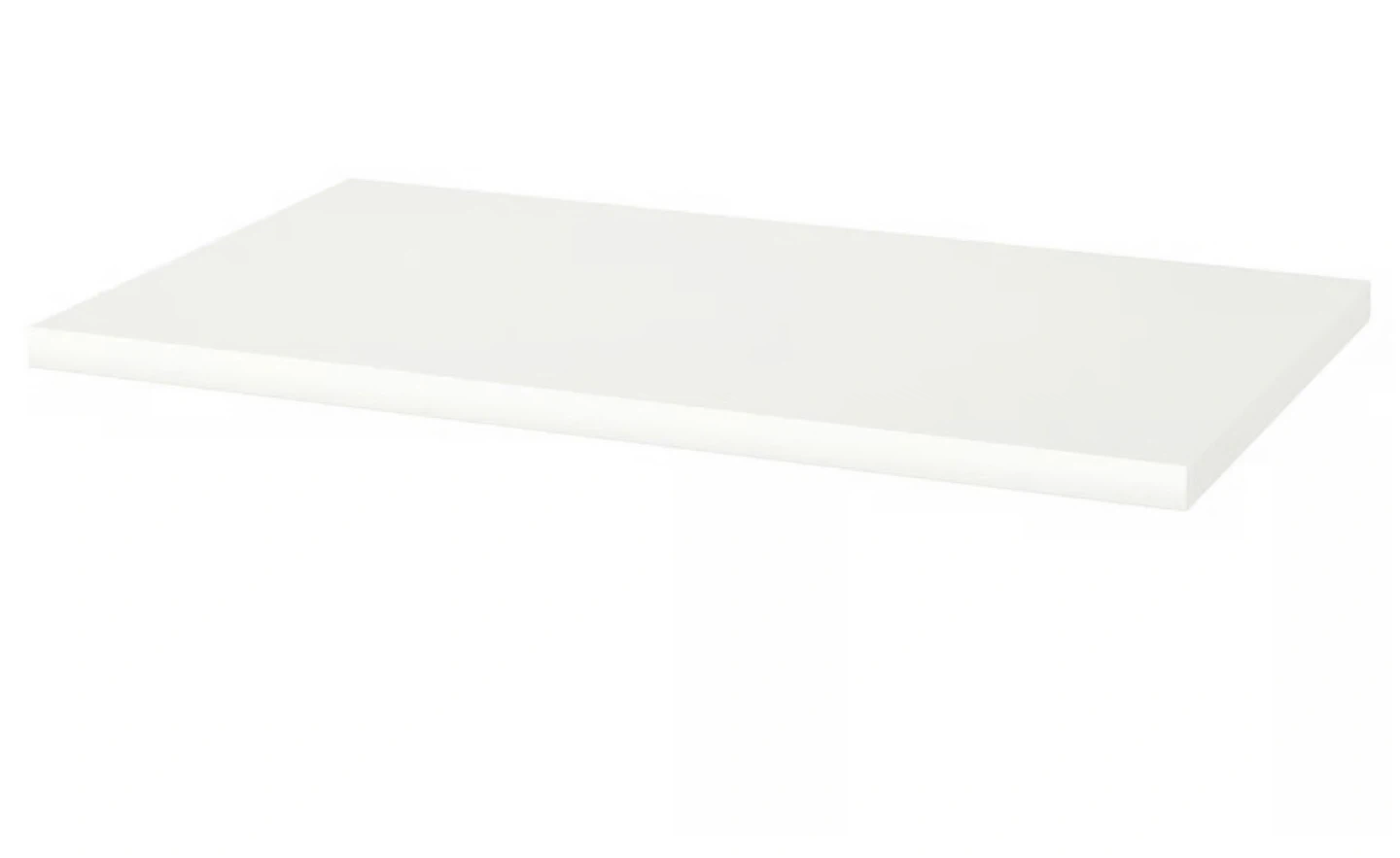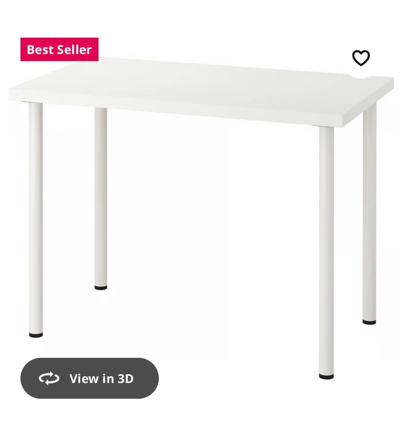 This is an IKEA desk with a white table top and white legs. It measures 100 cm (39 ¼") by 60 cm (23 ⅝"). The height is 74 cm (29 ¼"). This desk is suitable for work or study spaces.