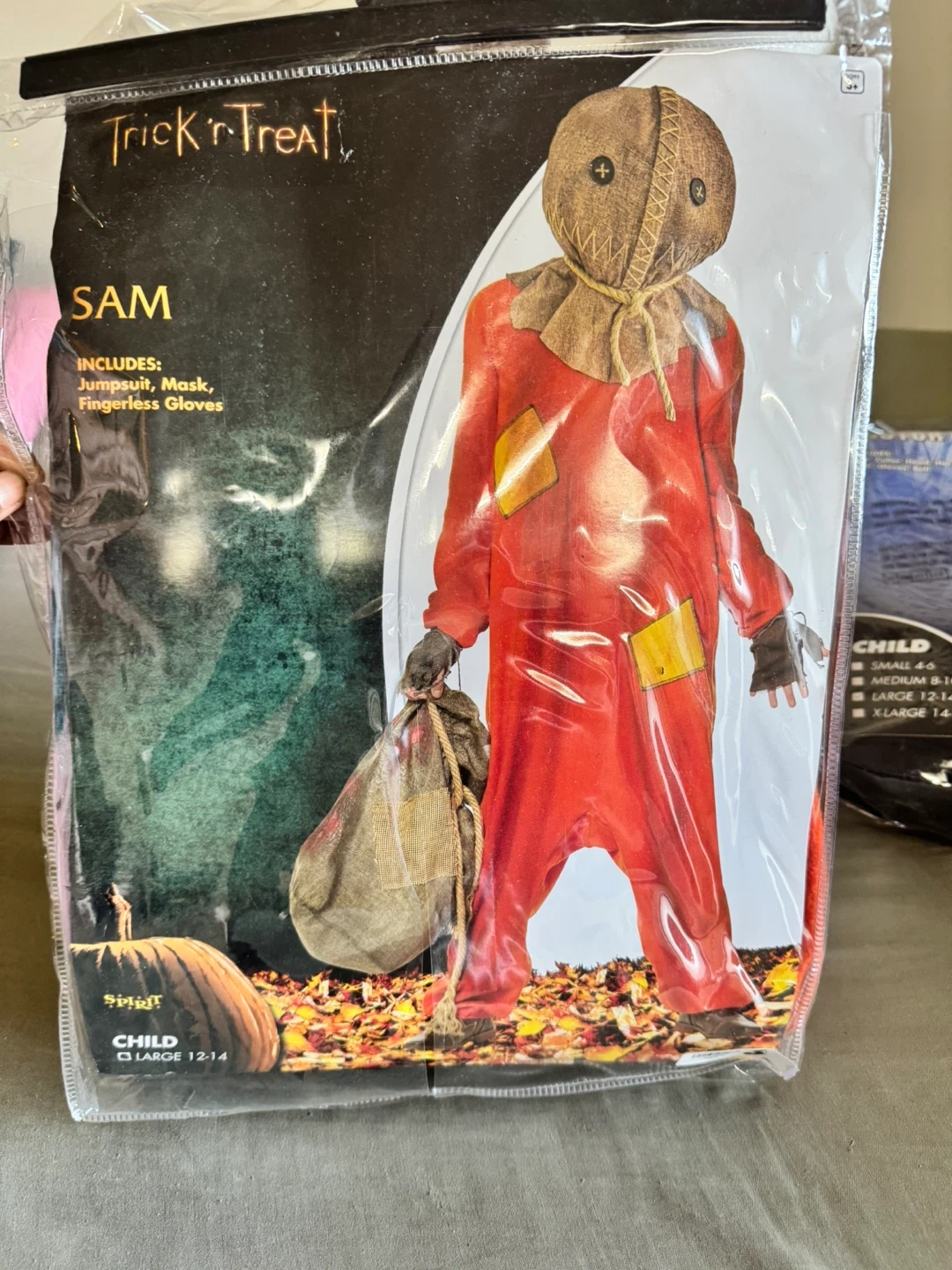Selling a variety of child-sized Halloween costumes! Sizes range from Small to Large, perfect for kids aged 10-16. Brands include Spirit Halloween and Trick 'r Treat. Each costume includes various pieces like robes, masks, gloves, and jumpsuits. Get ready for a spooky Halloween!