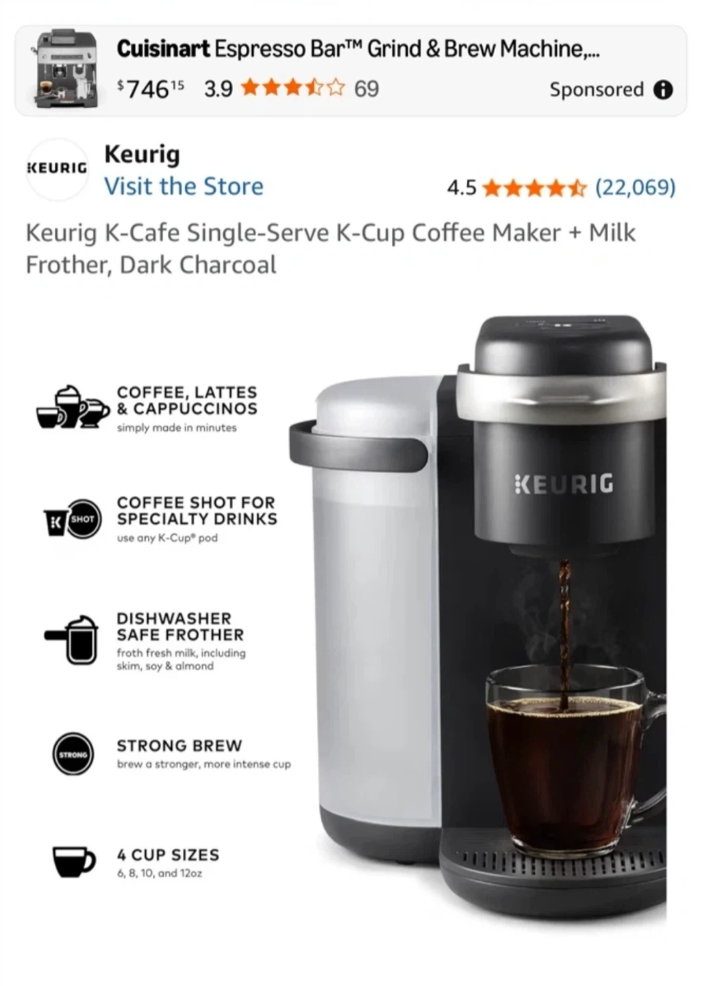 Keurig K-Cafe Single-Serve Coffee Maker + Milk Frother