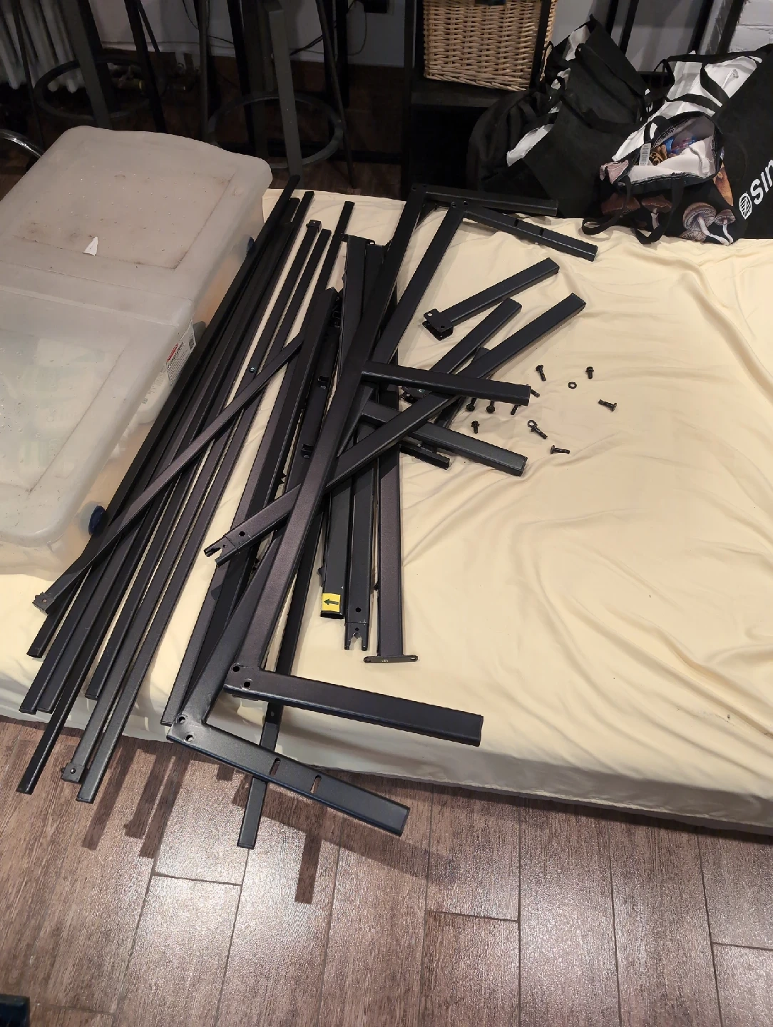 Used for a year and currently disassembled. all parts included. no visible damage, but some cosmetic damage where the slats met underneath.